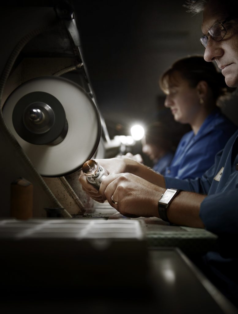 Unlike other companies, Jaeger-LeCoultre still uses the traditional adhesive of choice for this task which is shellac, a substance secreted by insects commonly found in Asia. The reason for this is because it is easy to work with and is hard once allowed to set, but can be softened when heat is applied making it easier for them to service a watch. In order to take some of the shots that we do of staff working on things we have to get a little ‘friendly’ as it was described to us. Harlan rested the camera on Jovans shoulder to keep it steady which garnered us a few giggles, the things one does to take a decent shot.
