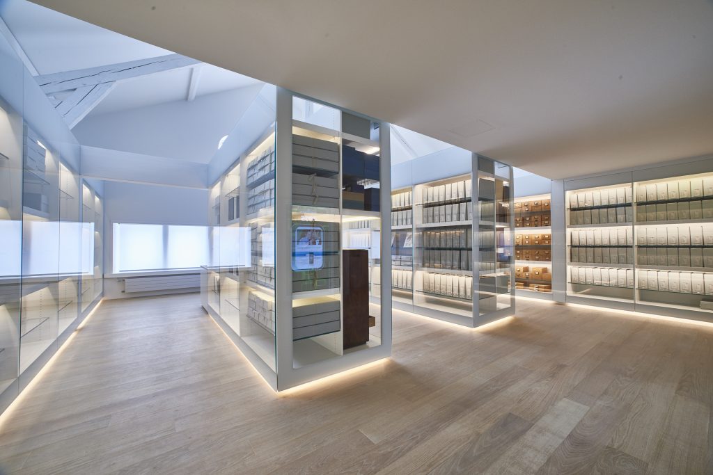 Eventually the lake (known as Lac De Joux) came into view and there were some stunning images of the scenery, our route took us from one end of the lake to Jaeger’s manufacture which is near the other end, so we got to soak it all in along the way. About twenty minutes later we arrived at the front of the manufacture which has been styled to look similar in a way to their boutiques on the inside. Behind a screen was the entrance to the workshops themselves, but first we had to climb what felt like the stairway to heaven to get to a lounge with impressive views over the entire manufacture. You see, Jaeger-LeCoultre’s manufacture itself is a triumph of design where old and new blend together. The place is built around a square courtyard in the centre with the first workshop building standing proudly in one corner while the rest of it sprawls outwards. Each building has the year it was completed inscribed onto it as well.