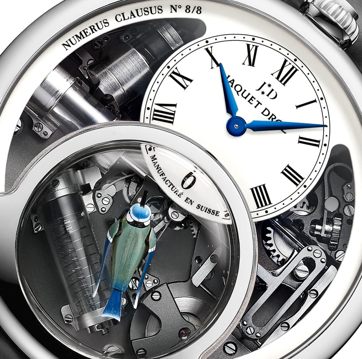 Jaquet Droz was never just a watchmaking company. They started off making automata, many made for royalties and aristocrats and specialty clock making. Since 1738, Jaquet Droz has been known to include the influence of nature in all their works with their most famous and popular automata revolving around birds and the chirping movement. Hence it was only fitting to include that part of their DNA into their horological aspect of their brand, but it wasn’t easy. They first started with painting the bird on their enamel collection. Then they progressed by incorporating the aspect of the nature while creating a dial that depicted motion through nature. Now finally, they have reached their end goal, encapsulating a bird in a watch while being able to make it produce chirping noise, just like their automata, and it’s called The Charming Bird.