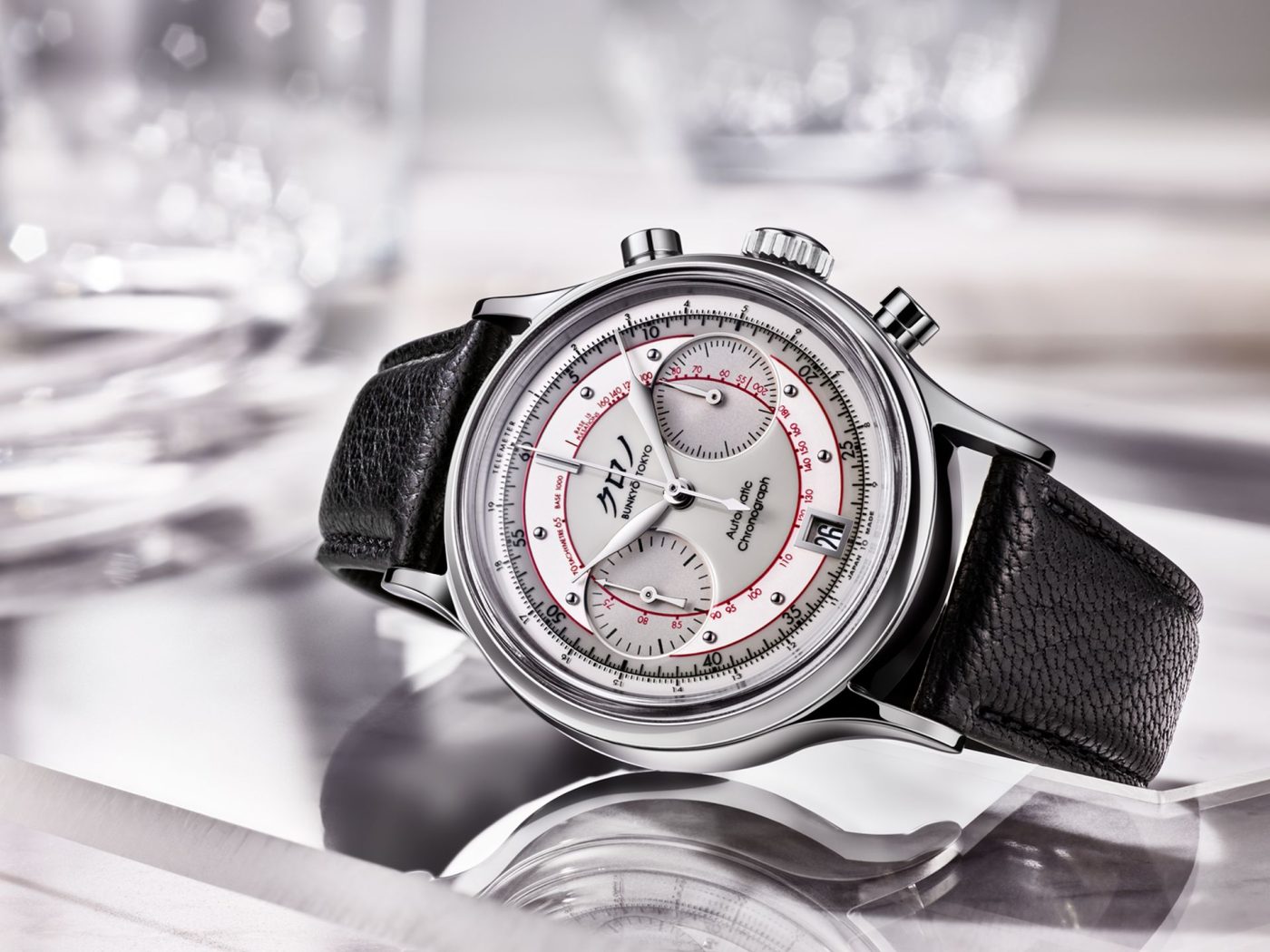 The new Chronograph II White, nicknamed Shiro, brings a new color palette to the original that launched last year with a black dial. The overall design remains unchanged, but improvements include higher definition printing, a greater depth of field from heavier lacquer, parallax overprinting and “kyudo” arrow hands. The recessed sub-dials feature concentric guilloche and diamond-cut steel surrounds, and small seconds are at 3 o’clock and a 30-minute counter sits at 9 o’clock. A mix of three main colors, bright white, heron white and red, all work well together and are complemented by polished silver hands and round applied indices. It’s a rather busy dial with both a tachymeter and pulsometer in red that run through both sub-dials. A third telemeter spans the outermost, sloped perimeter. Neither sub-dial has Arabic numerals as well, making quick references a bit difficult. The “kyudo” arrow hands bring some Japanese flair and the overall execution is very nice. The colors were achieved by fine sandblasting, silvering and thick lacquering. A framed date window tastefully sits at 6 o’clock.