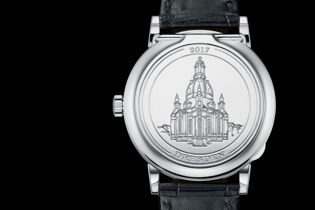 Dresden Frauenkirche (a Lutheran church) is one of Dresden’s most famous landmark and after being destroyed during the World War II the iconic building was brought back to its glory between the year 1994 and 2005. Yes, we are not here to discuss Dresden’s history but this monument does hold a special place in A. Lange and Söhne’s own history and that is because the brand opened its first “proprietary” point of sale in September 2007 adjacent to the Dresden Frauenkirche. So, as a celebration of the boutiques 10th birthday, the brand has beautifully engraved the monuments picture on the case back of the A. Lange & Söhne 1815 “Cuvette”.