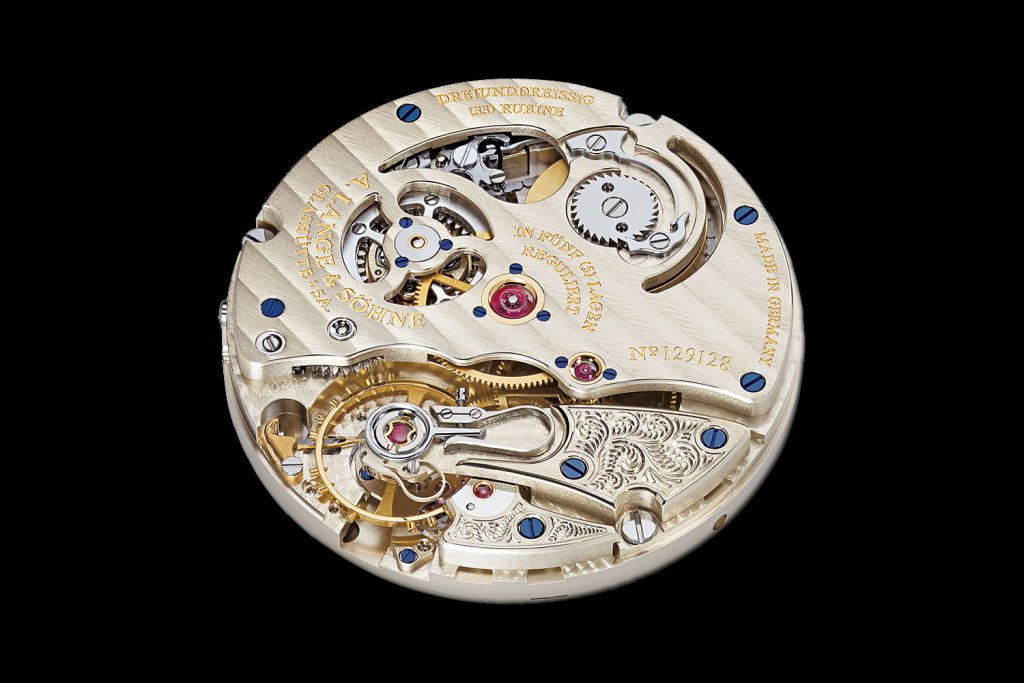 Onto the more technical stuff, a Lange watch wouldn’t be nearly as impressive if it didn’t have an in-house made movement and an ETA base jammed in instead would it? The movement inside this piece is remarkable too, in the traditional Lange method we’ve come to know, the balance cock has been hand engraved with the signature pattern of the individual who engraved it. The rest has been given the standard striped design we all love. The stand out for this watch, though, has to be the power train assembly. In most watches, the energy required to move the hands gets to the escapement from the mainspring barrel through a series of gears and regulators which make sure the watch doesn’t run out of control for a few seconds and then stop.