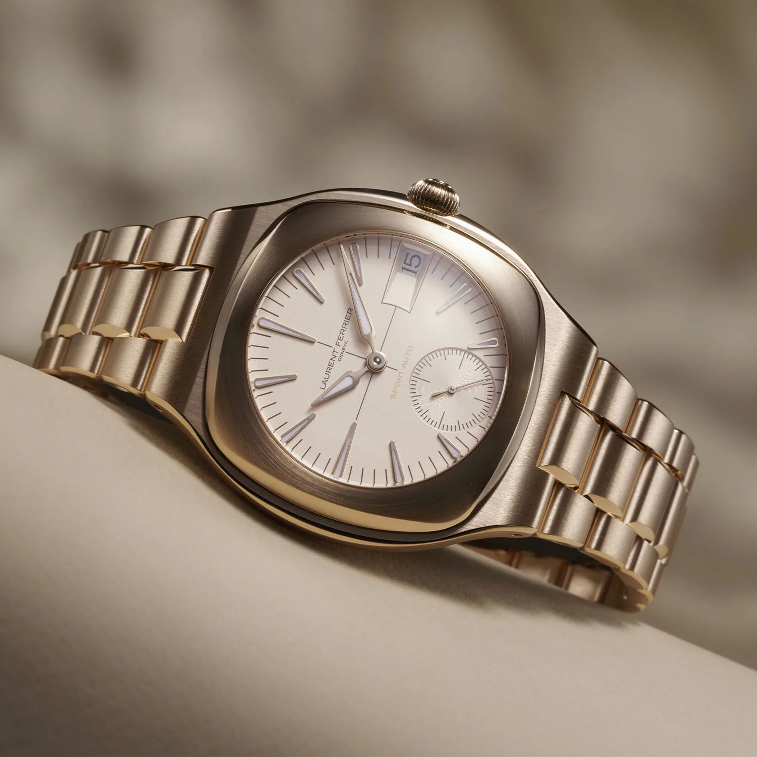 Laurent Ferrier has introduced the Sport Auto 79 in Red Gold, marking a luxurious evolution of its integrated bracelet sports watch. This edition celebrates the brand’s 15th anniversary and pays homage to its origins; rooted in the 1979 Le Mans race, where founders François Servanin and Laurent Ferrier secured a remarkable third place finish.