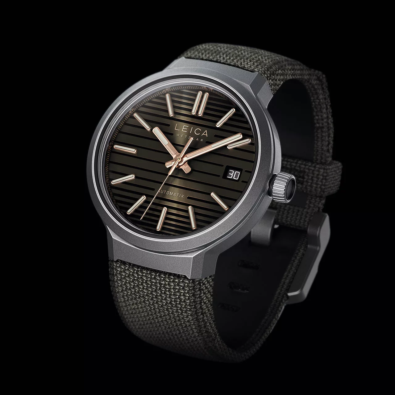 The ZM 11 dial perfectly showcases Leica’s design finesse, featuring a dual-layered design that transforms its appearance with changing angles. The upper layer, adorned with a grille design, creates captivating gradient effects that shift with the wearer’s movement.