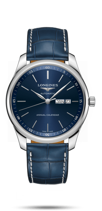The master collection from Longines comprises elegant and dressy timepieces that are best suited for those formal occasions and the new annual calendar timepieces blend in effortlessly. Starting from the face, there are three different colors, two different textures and three different layouts on offer to suit different needs. Looking for something more traditional, choose from either the black dial with Roman numerals or the cream dial with Arabic numerals both of which have been presented with a beautiful guilloche pattern. In the mood for something more modern, Longines has you covered with a blue sunburst dial with applied hour markers. Common to all dials is a chapter ring on the outer periphery, elegant leaf-shaped handset, and a dual window that displays the month of the year and the date.