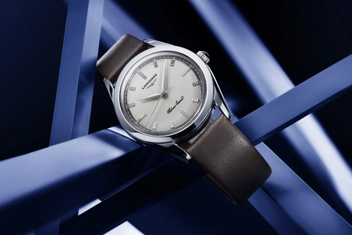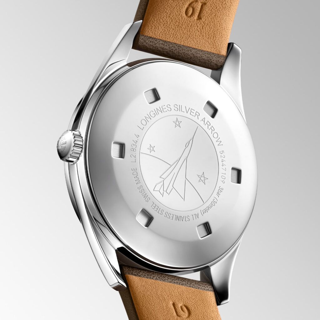 The new Longines Silver Arrow comes mated to a brown calf leather strap. The watch will retail for USD 2,100 and will come with a five-year warranty.