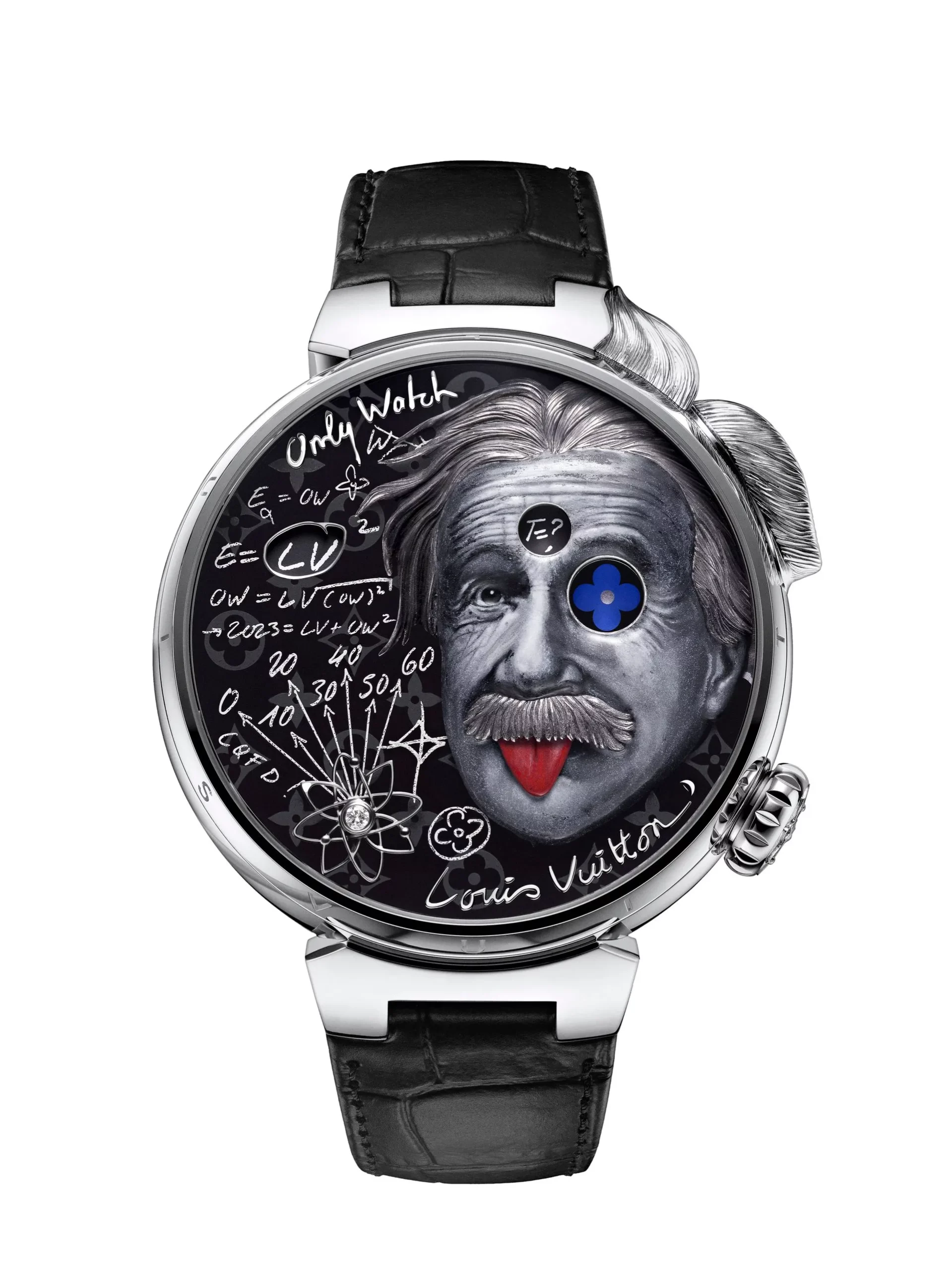 Louis Vuitton has created a one-of-a-kind Einstein Automata timepiece for the Only Watch 2023 charity auction. The watch is built on the same Tambour Automata platform as the Louis Vuitton Tambour Automata Opera watch from earlier in 2023 and features a 46.8mm-wide case in 18k white gold.