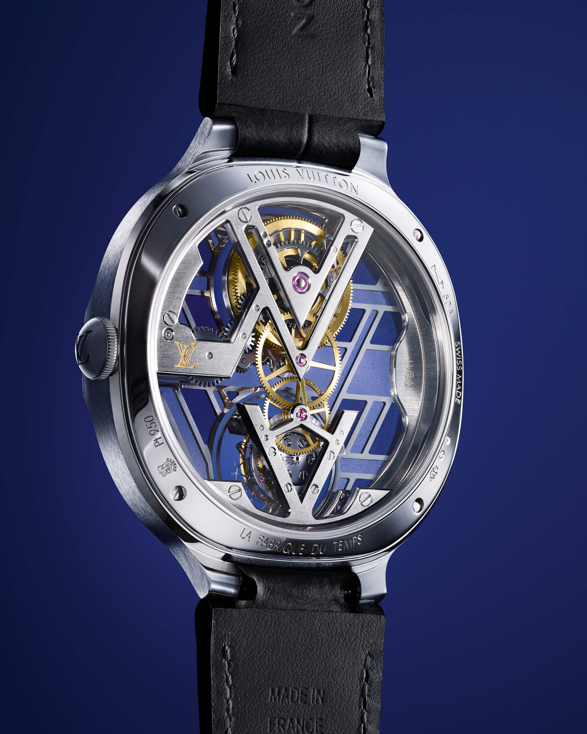 Powering the Voyager Flying Tourbillon Pique-à-jour is the hand-wound LV 104 movement. This 168-piece caliber boasts a robust 80-hour power reserve and beats at a traditional 3Hz (21,600 vph) frequency.