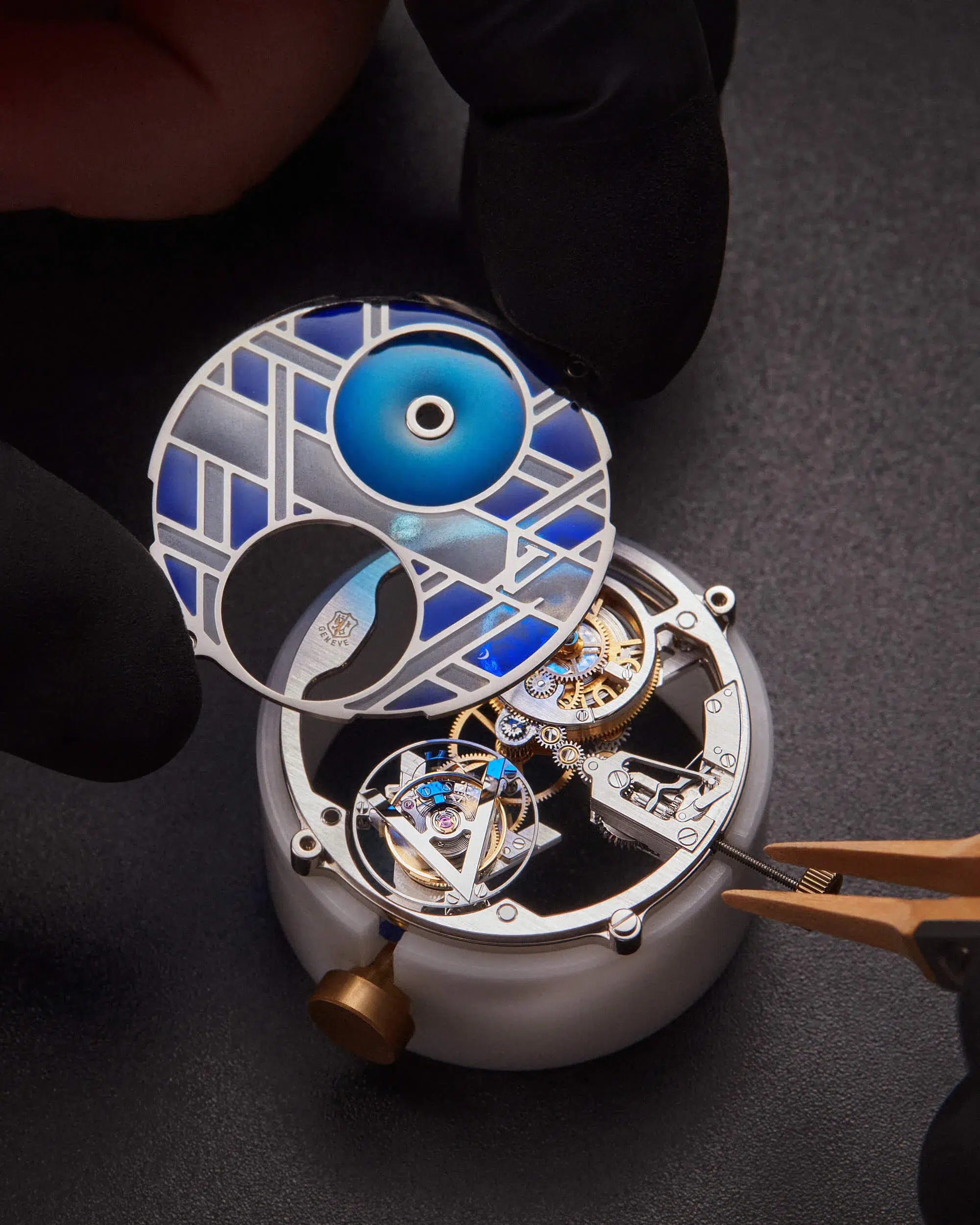 Following its successful iterations as a minute repeater, a bedazzled and a skeletonized timepiece, the Louis Vuitton Voyager takes another bold step forward with the introduction of the Voyager Flying Tourbillon Plique-à-jour. This new iteration seamlessly blends artistic expression with intricate watchmaking, resulting in a truly unique wrist statement.