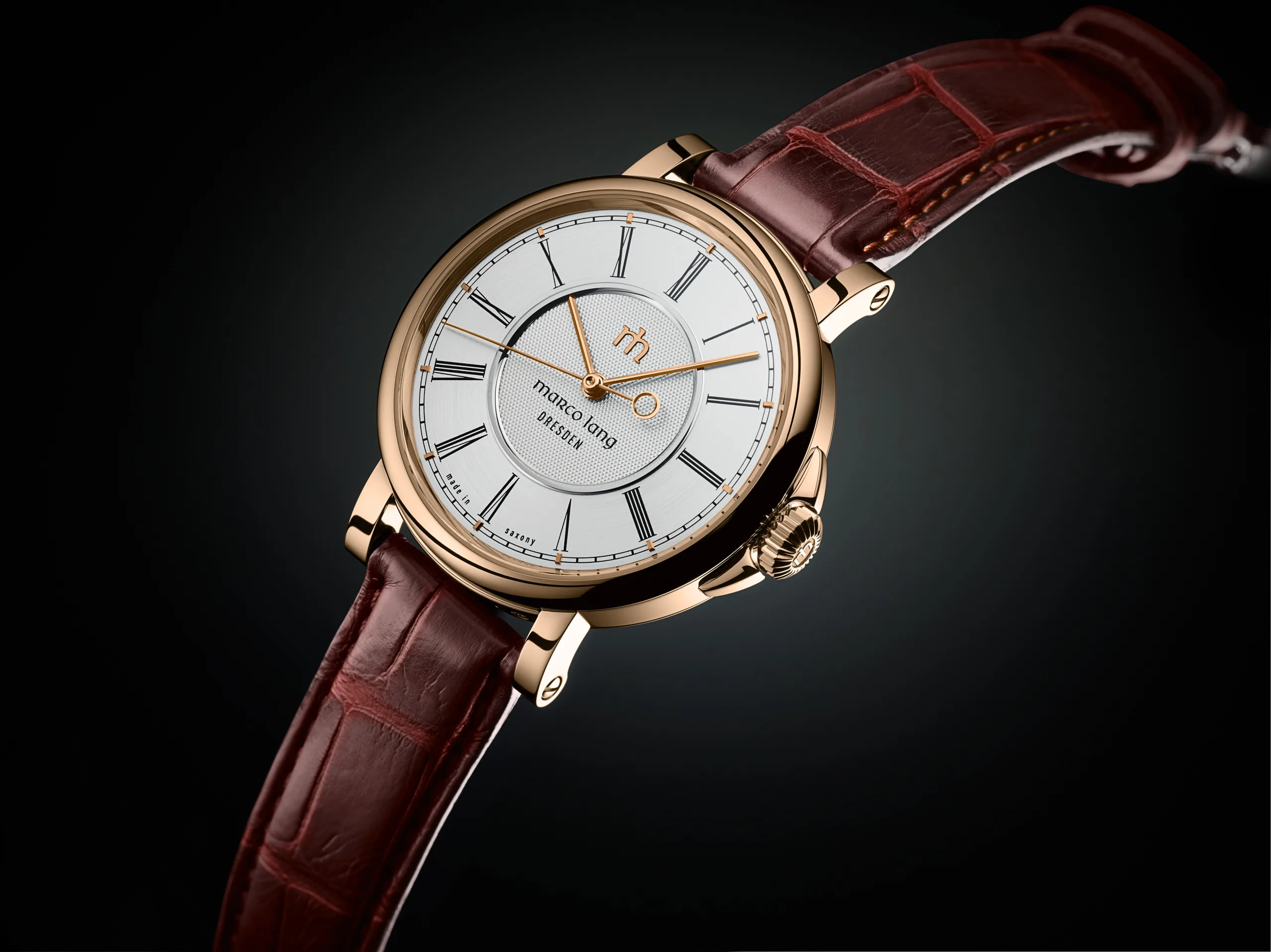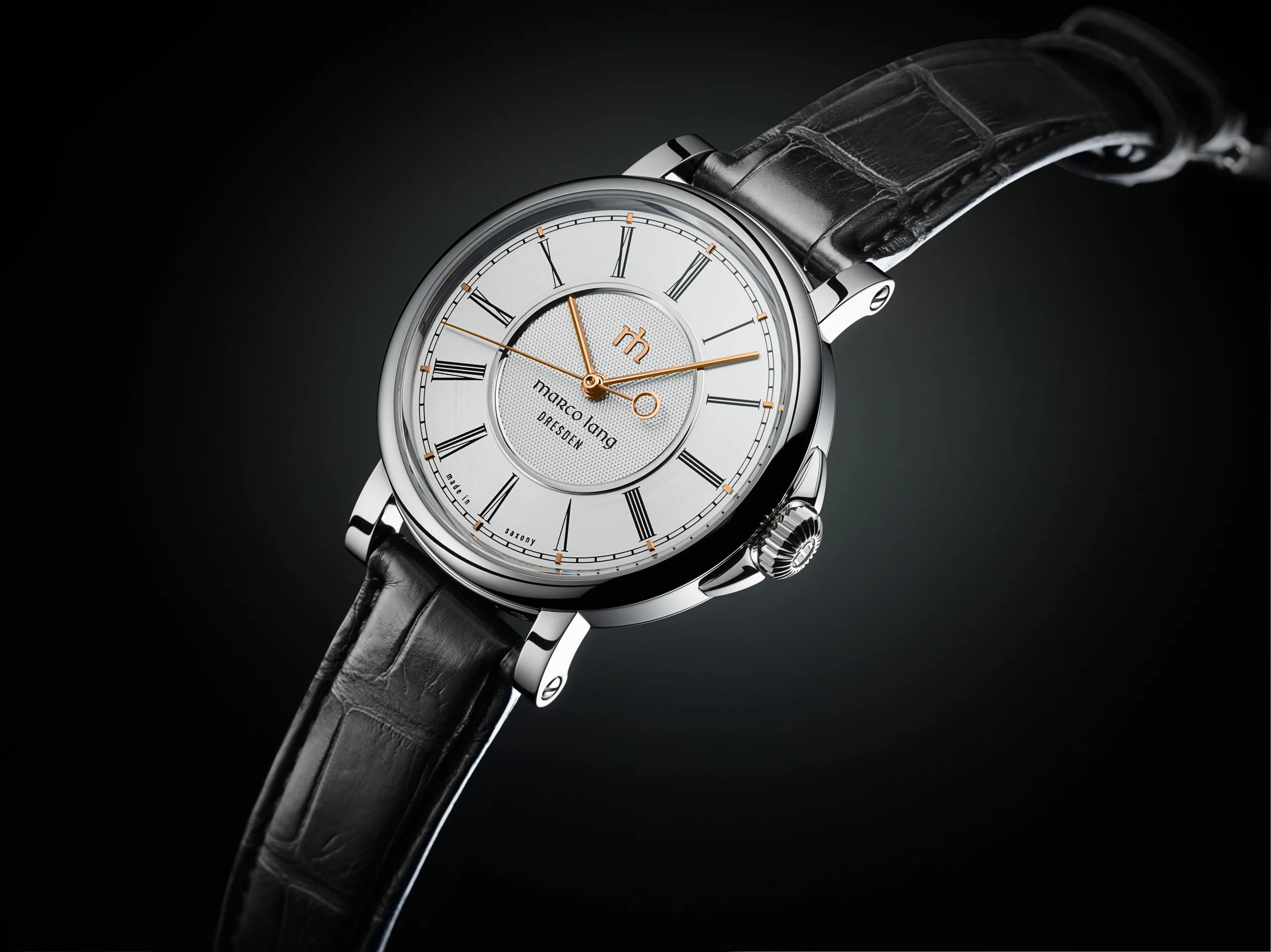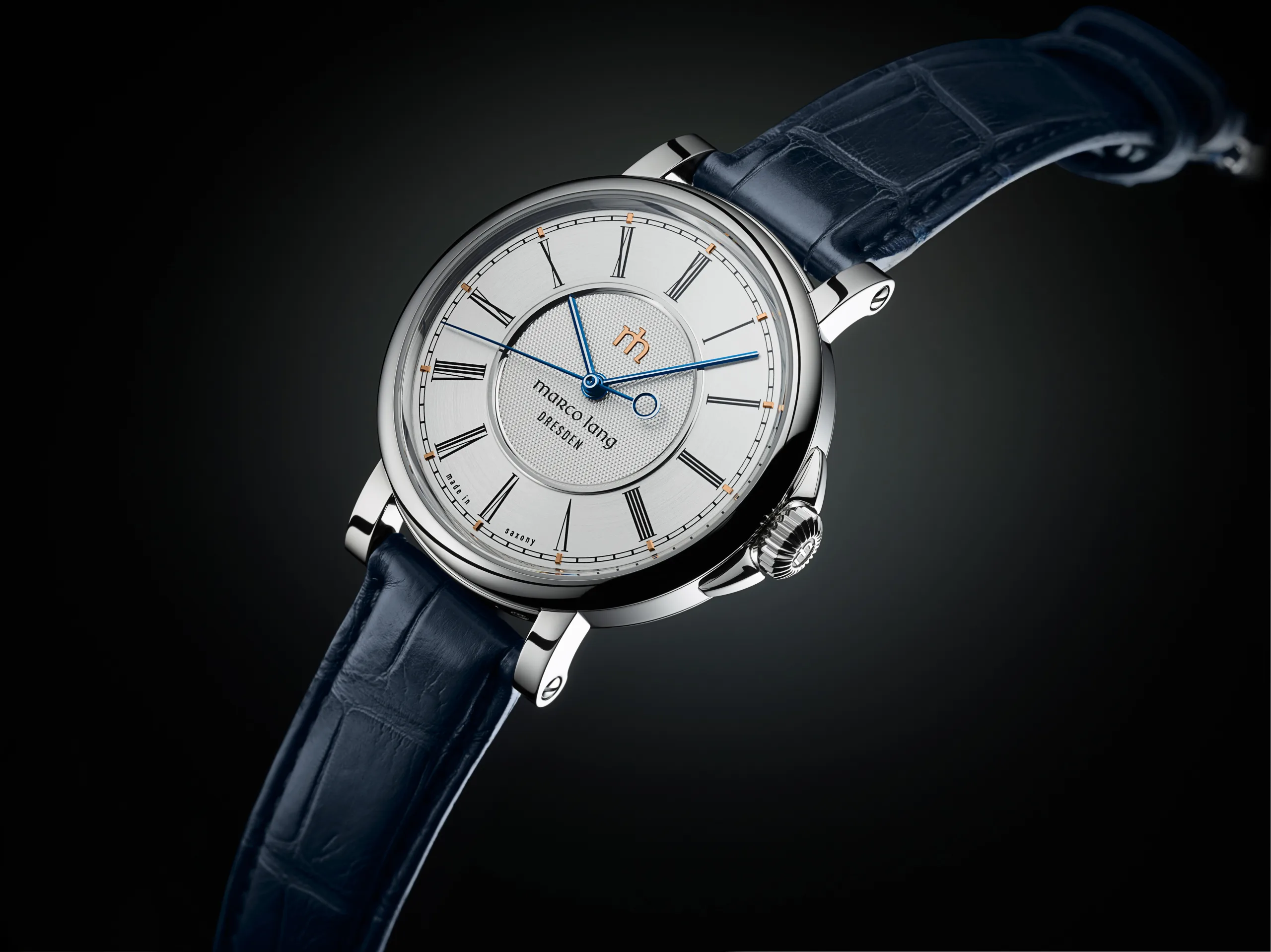 This idea’s a bold one, that’s for sure. The Zweigesicht-1 is an exciting take on the concept of a reversible wristwatch. The front dial is made up of a bright silver-plated style with a central section of clous-de-Paris engraving. Meanwhile, the matte outer area is home to extraordinarily long and thin Roman numerals. Long blue pencil hands make telling the time easy to read. I like how some rose gold has been used to add contrast to the dial in the Marco Lang logo and the dots for the hour markers. The words ‘Made in Saxony’ at the bottom are a nice touch, too. Saxony, specifically Glashütte, is the home of German watchmaking after all (although Lang & Heyne are based in Dresden, so it’s safe to assume this has been made there as well).
