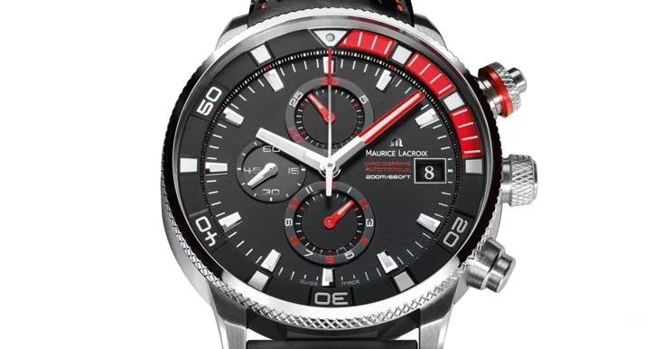 The Pontos S Supercharge is water resistant to 200 meters, inside we find the ML140 caliber, which is a custom ETA Valgranges (rhodium, ornate pearl and straight Côtes de Genève motif). mauricelacroix.com