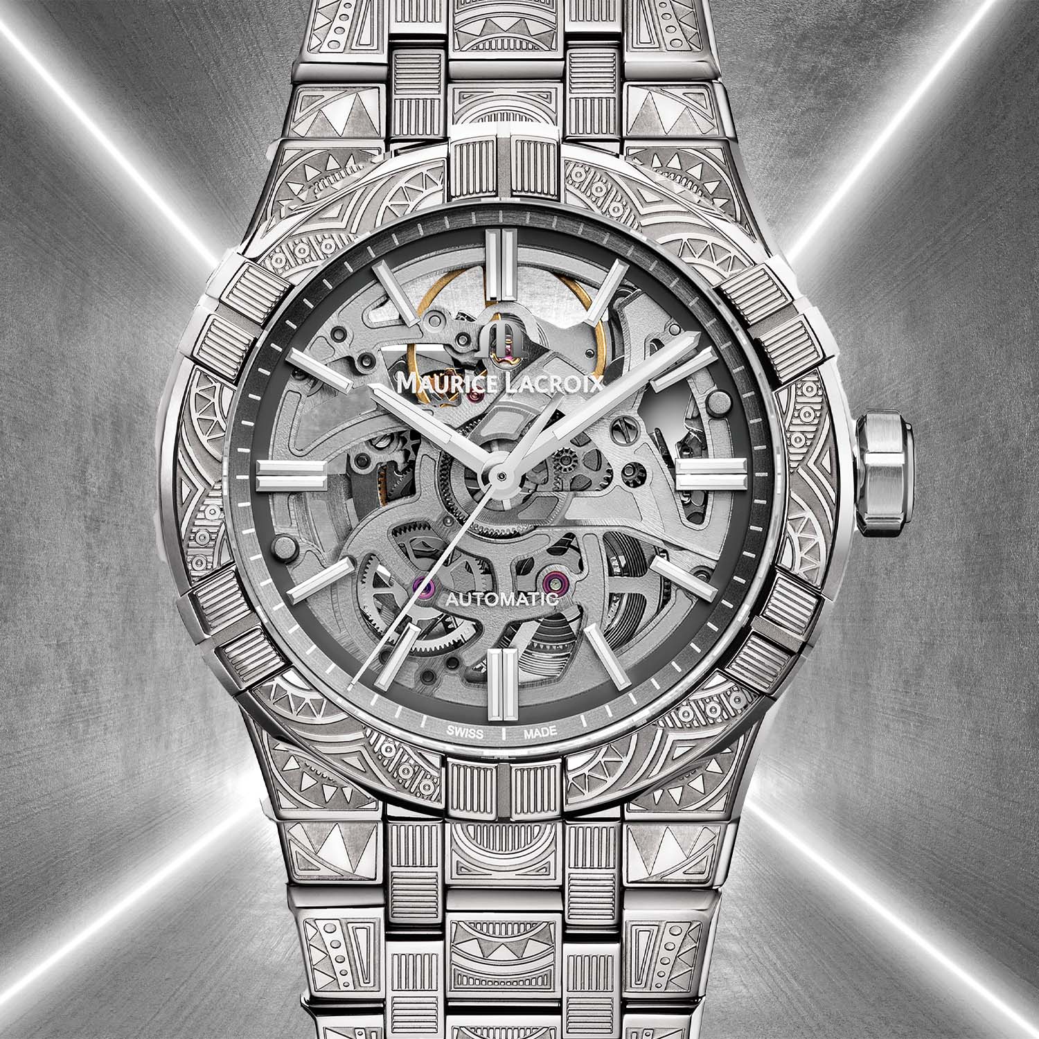 In the ever-evolving realm of accessible luxury sports watches, the Maurice Lacroix Aikon collection has consistently stood out for its integration of design and functionality. A couple of years ago, Maurice Lacroix unveiled the original Aikon Urban Tribe—a limited-edition timepiece adorned with urban architectural engravings on its case and bracelet components. It was based on the Aikon collection, which is known for its clean lines and sporty aesthetic. The latest addition to this lineage is the Maurice Lacroix Aikon Skeleton Urban Tribe watch, a stunning amalgamation of the Aikon Skeleton’s openworked movement and the Aikon Urban Tribe’s engraved case and bracelet.
