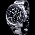- Black hand-stitched alligator with 18k gold and titanium custom designed folding buckle.