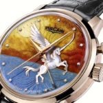 This new design features beautifully skeletonized aluminium wings on it to help keep it as light as possible, making a flight around a planet easier. They’re connected to the main body of the design which comes in three colours, either lacquered white, black or a cool chrome finish. The base that the machine sits on amplifies sound (technology that Reuge is very well accustomed to making) that is over 350 years old.