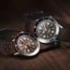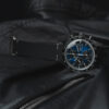 A couple of orange touches make all the difference with this one, and they break the monochromatic appearance. The watch has a 30-minute chronograph and a date window at 6 O’clock. Interestingly, the chronograph has a tachymeter which is calibrated for measuring nautical miles, which is unusual.