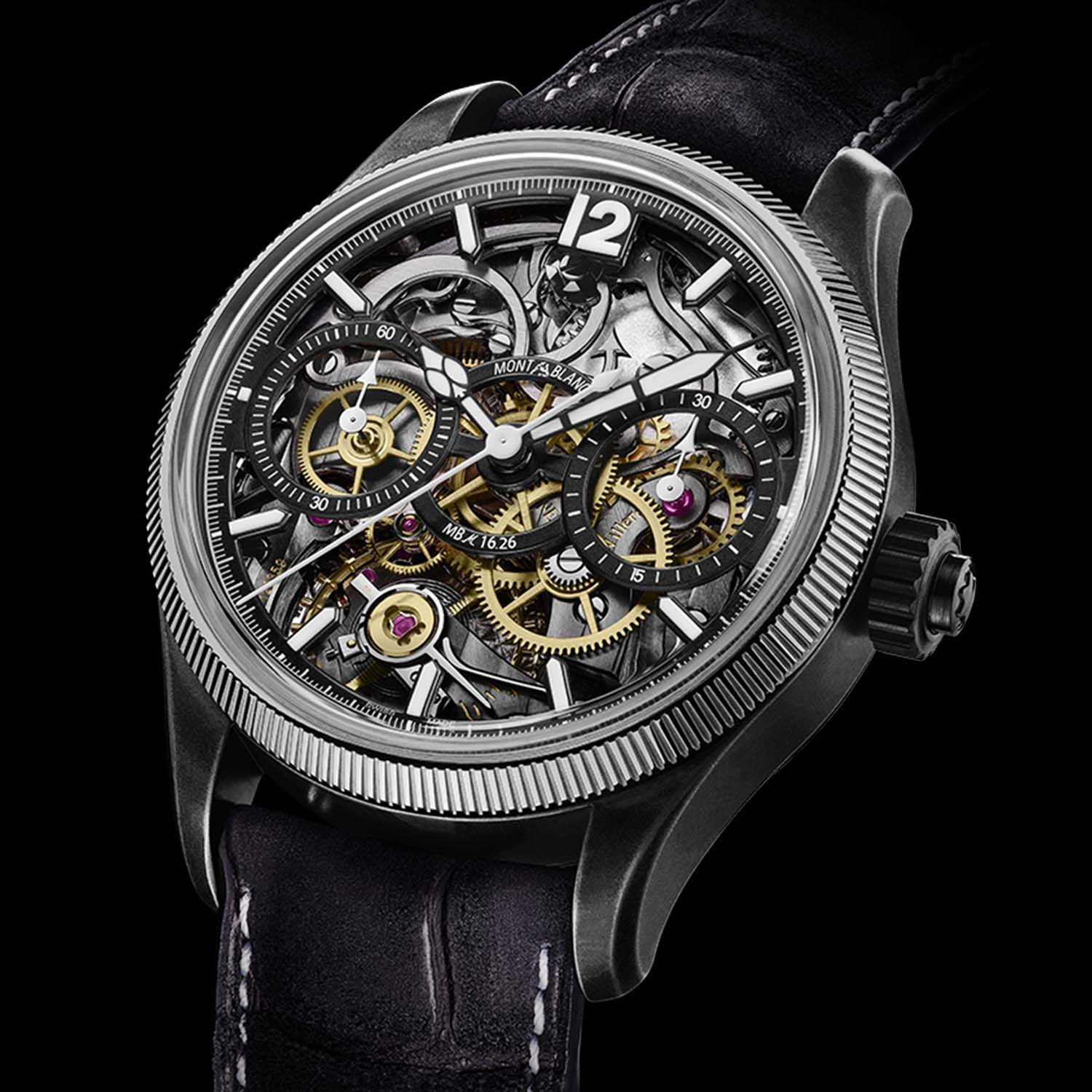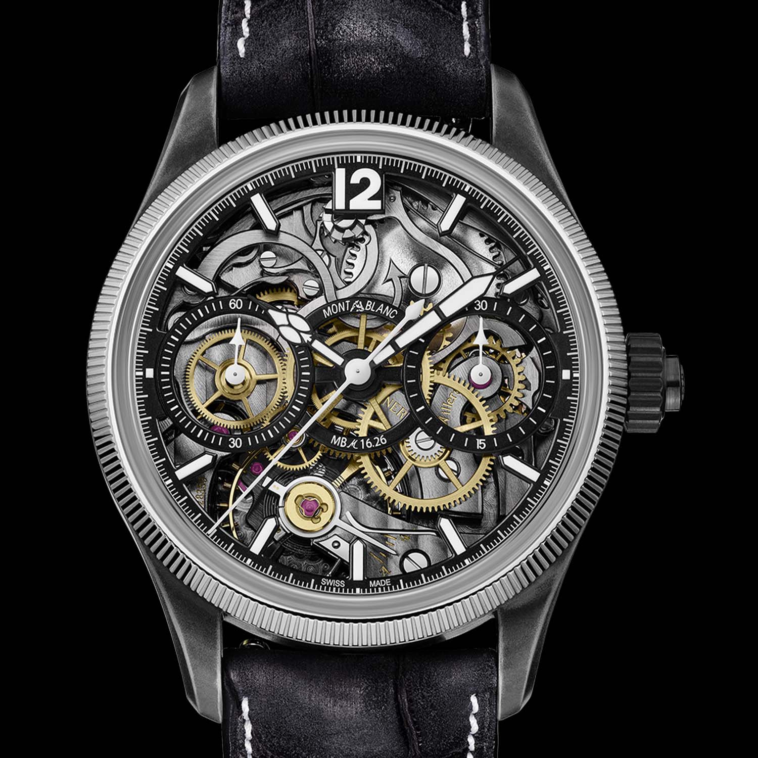 The caseback of the Unveiled Secret is sealed and features an engraving of the Minerva manufacturer. The black nubuck alligator strap with white stitching and a distressed steel triple-folding clasp complete the watch. The Montblanc 1858 The Unveiled Secret Minerva Monopusher Chronograph is limited to only 88 pieces and retails for EUR 40,000.