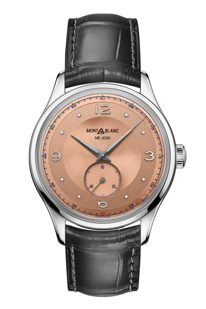 A beautiful movement like the MB M62.00 deserves a great looking face and Montblanc has given this watch just that. The salmon-colored dial is stunning to look at and given that it is not a common sight in the current horological landscape, it makes the perfect choice on a watch like this. Color aside Montblanc has shown great attention to detail on the execution front mixing several different textures to enhance the visual appeal. The center features a fine sunburst finish, followed by a grained section and finally there is another sunburst section on the outermost periphery. The hour markers are a mix of applied lume filled circular plots and Arabic numerals at the 4 quadrants, and the minute track comprises hash marks and numerals printed in blue except for the indication at 12 and 6 that are presented in red to provide an added dash of color. Time can be read easily using the elegant dauphine style hour and minute hands along with the baton-style seconds hand that is nestled within the subsidiary seconds dial, which is nicely recessed but unfortunately cuts the numeral at 6 slightly disturbing the coherence of the dial.