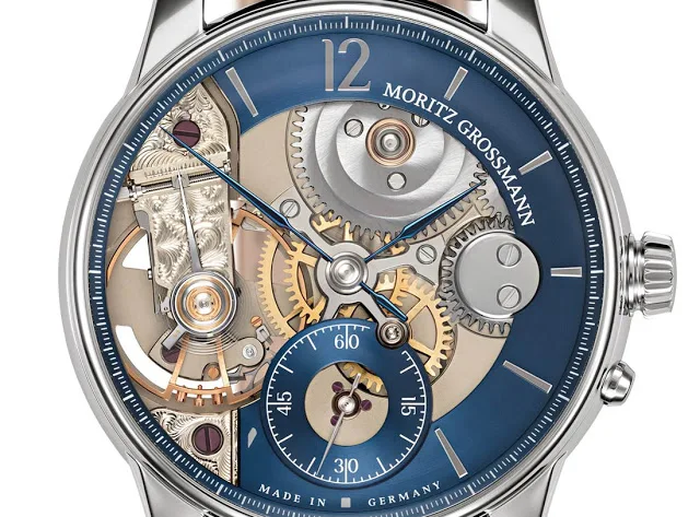 The 41mm cases are made of either 18K rose gold, which will cost €38,400 or platinum which will cost €46,800, it comes in a limited edition run of just 18 watches. You have to admire the details on this watch, as well as the balance cock I particularly like the stand-out feature of the watch dial, have you seen it yet? The sub-seconds hand has been set in a polished gold chaton, a very unusual move for watch hands. If I were forced to choose between the two versions, I’d want the platinum simply for the versatility of the white metal, but the charcoal grey colour of the dial on the rose gold is terrific. Moritz Grossmann has hit it out of the park, again.