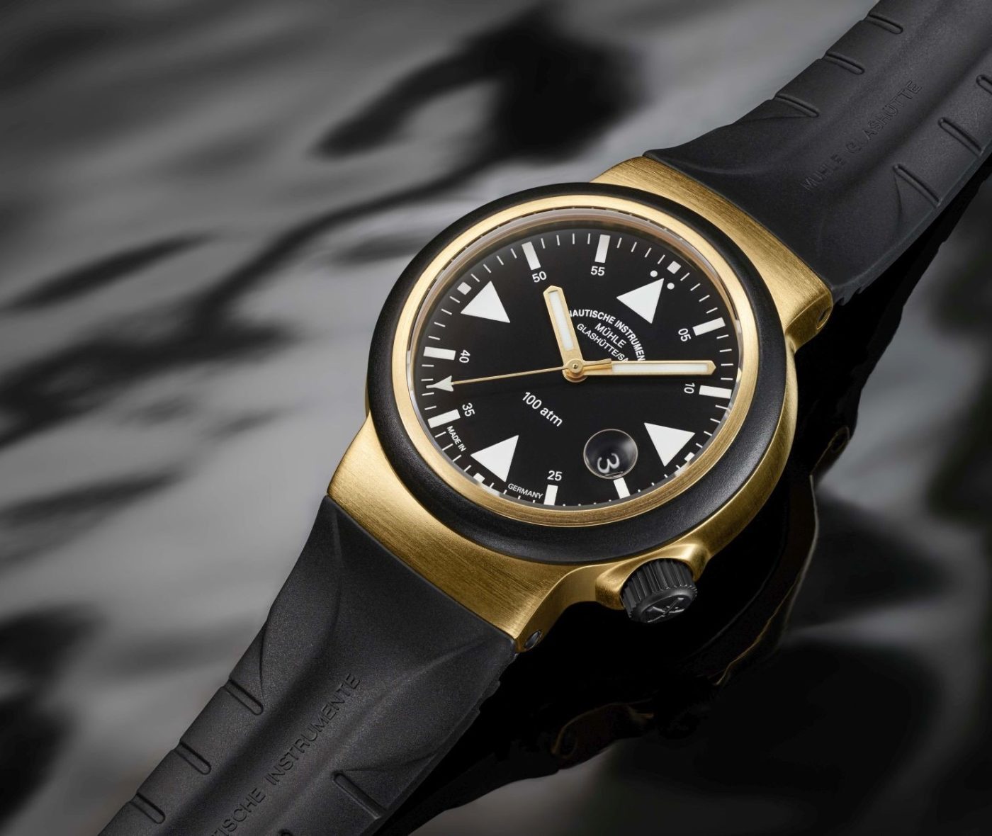 The new Mühle Glashütte S.A.R Rescue Timer Gold watch is limited to just 20 pieces. The watch retails for EUR 13,500 and comes attached to a custom black rubber strap.