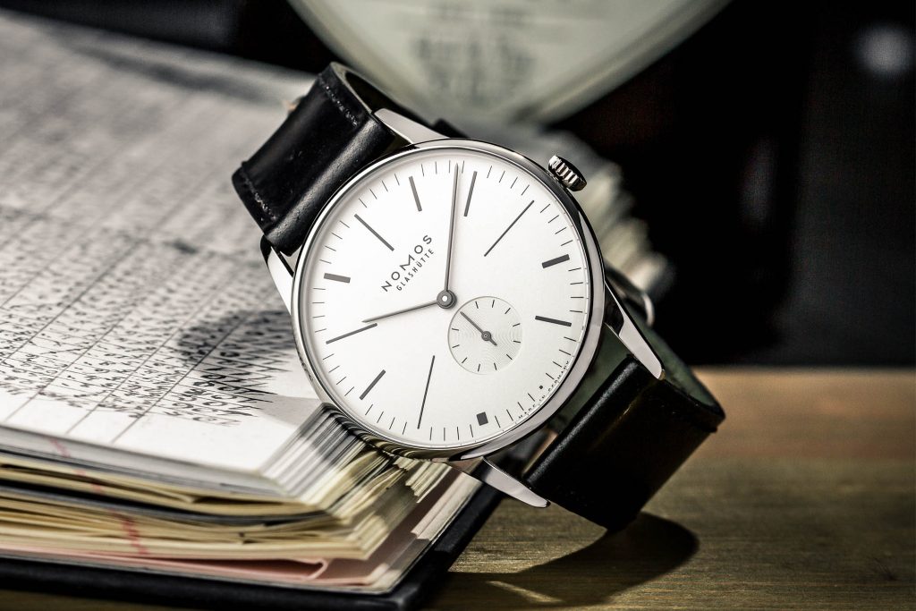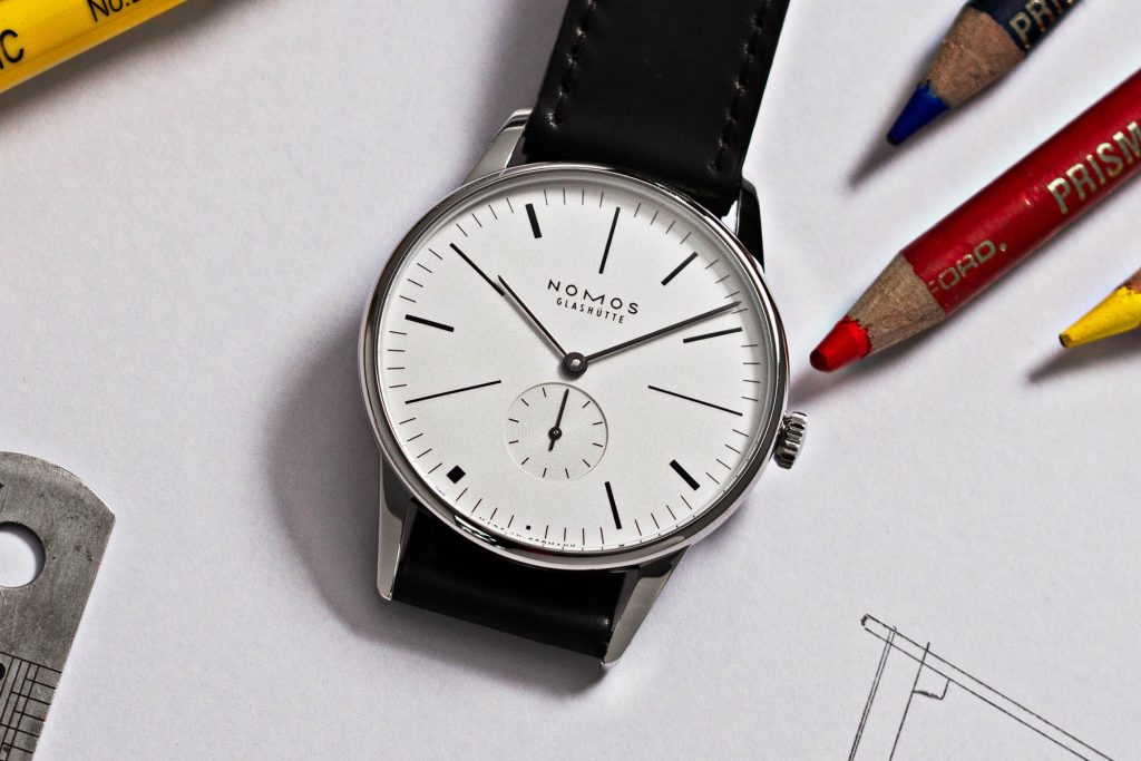 Furthermore, the galvanized, white silver-plated dial which receives most of the touches for the occasion comes in an unbalanced fashion which can be seen on the hour markers that are different in length and line weight. As said earlier, you will only notice this after a close inspection which is the true spirit of minimalism and abstraction. The asymmetrical composition of lines, squares, and rectangles seen on the dial is astonishing. The black coated baton hands look impressive and highly visible including the small seconds subdial at 6. Reading time with the Nomos Orion is remarkably easy and precise.