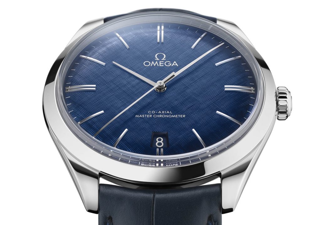 The major highlight of the new Trésor line has to be the stunning domed dials. There are two options we choose to cover in this article from all the new variations: a beautiful grey enamel dial or a blue dial with a unique brass stamped pattern. The enamel dial has been created using the Grand Feu technique wherein different oxides are first applied to the dial, which is the kiln fired at high temperatures to achieve the desired color and texture. Complementing the grey and blue dials are applied baton-style indices which have been rendered in Sedna and white gold respectively and have also been slightly curved to match the shape of the dial. The baton style handset follows the shape of the applied markers and gives the dial an elegant and cohesive appearance. Finally, you have the ever-controversial date complication which surprisingly makes its way on the blue dial variant only. While I am myself not a big fan of a date on a watch I feel that Omega has done a neat job by positioning the trapezoidal date window just above 6 in order to keep the overall symmetry of the dial intact.