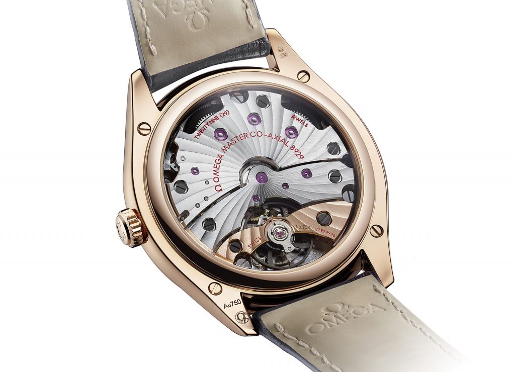 Powering these new watches are Omega’s latest highly accurate and robust hand-wound METAS certified movements. The Steel version is driven by the Caliber 8910 whereas the Sedna gold version uses the Caliber 8289 which is basically the same as the 8910 but has a Sedna gold balance bridge. Both movements feature a free sprung balance wheel and a Si14, are anti-magnetic to 15000 Gauss and offer an autonomy of 72 hours. They are also beautifully decorated with blackened screws and arabesque Geneva striping, and can be appreciated through the exhibition case back.