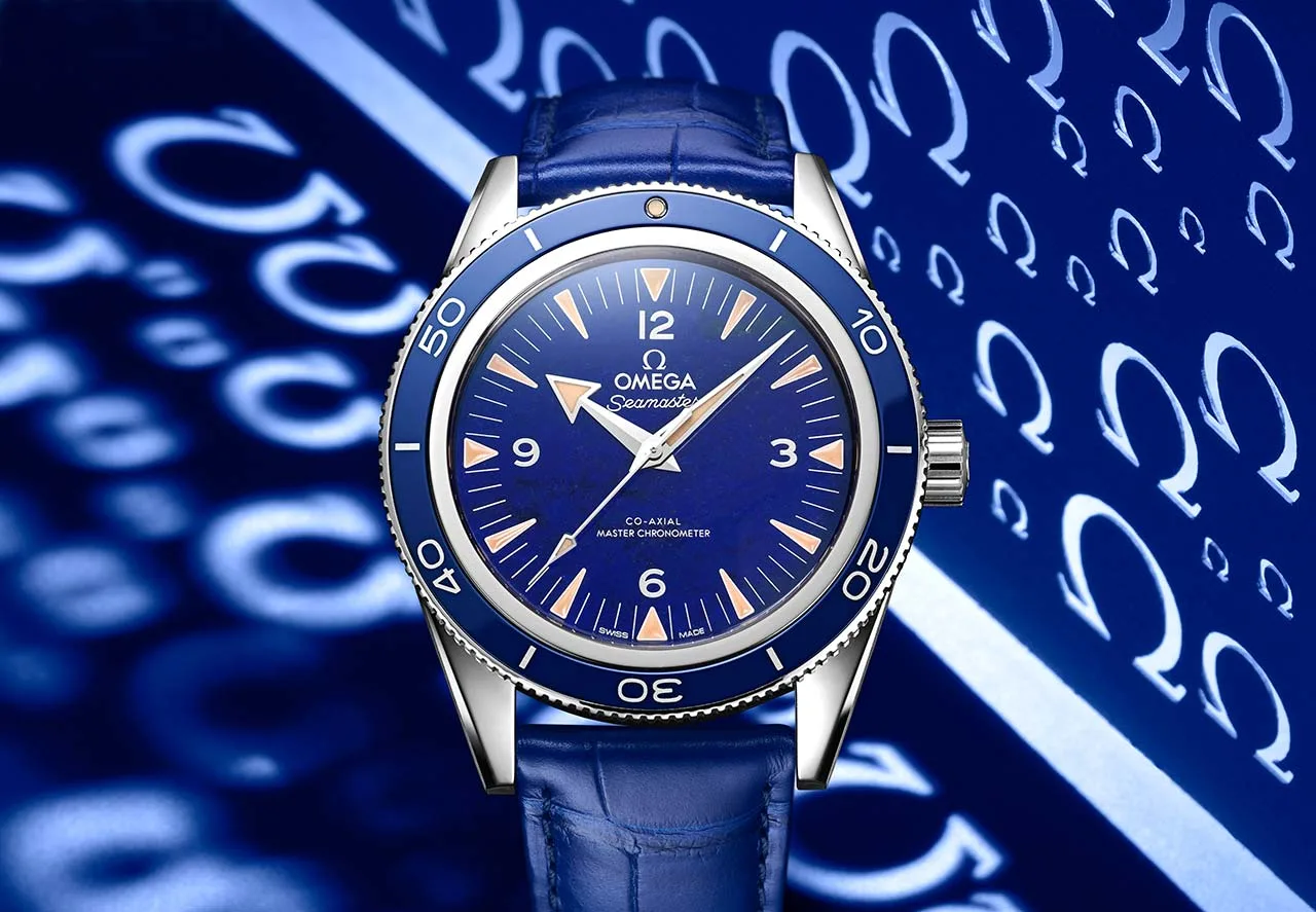 The blue colour comes from the use of Lapiz Lazuli which has a distinctive blue colour. Unlike Malachite, the value in Lapiz Lazuli comes from how pure it is, the most desirable having almost no gold pyrite flecks in it at all, which is why this Seamaster seems to have the plainer dial.Â