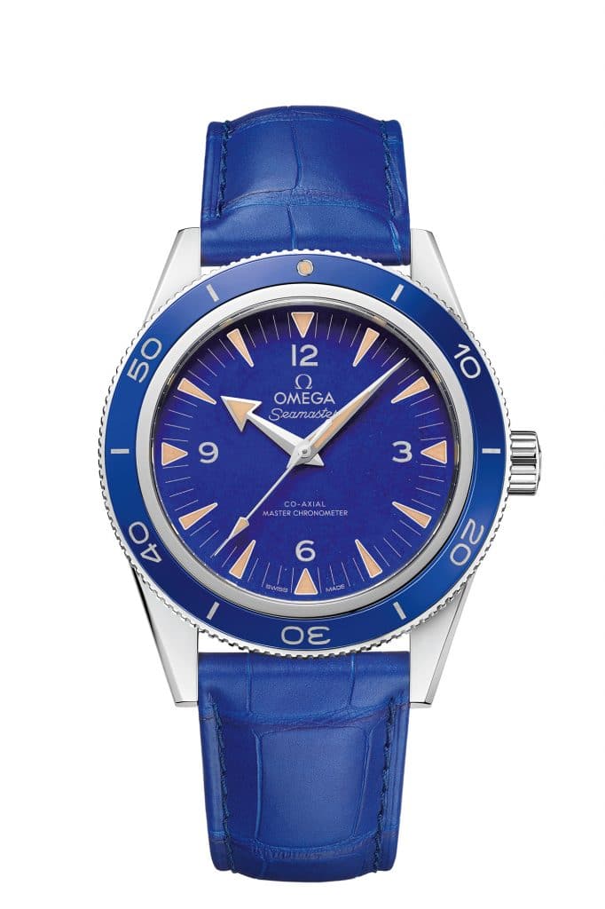 The blue colour comes from the use of Lapiz Lazuli which has a distinctive blue colour. Unlike Malachite, the value in Lapiz Lazuli comes from how pure it is, the most desirable having almost no gold pyrite flecks in it at all, which is why this Seamaster seems to have the plainer dial.Â