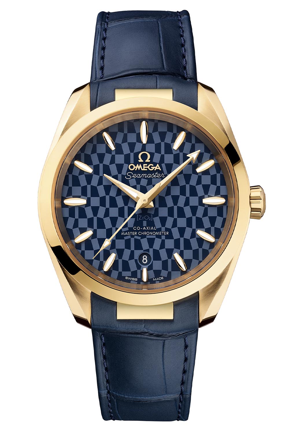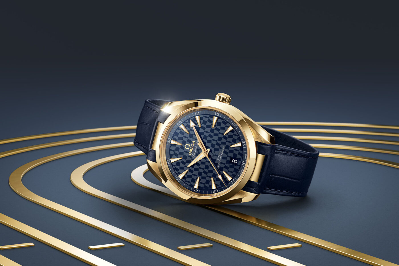 Back in 2019, we showed you a special edition Seamaster Aqua Terra designed for the 2020 Olympic games, which had a blue ceramic dial with a geometric pattern that was derived from the logo for the 2020 games (I wonder why they didn’t use the Simpsons inspired one for the 2012 watches?). Anyway, these two new watches are essentially the same but in gold and two different sizes.