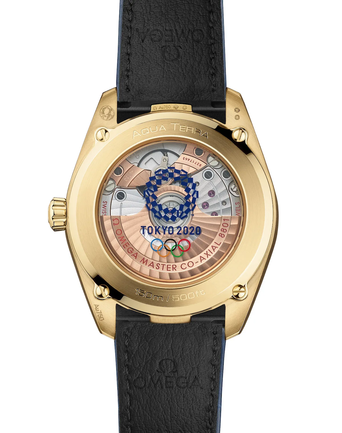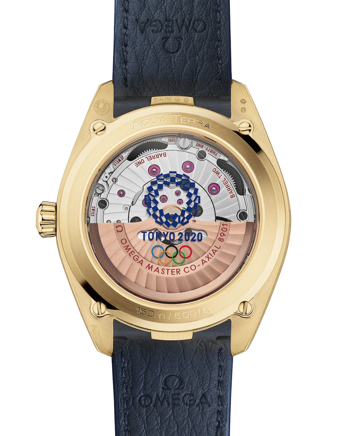 Back in 2019, we showed you a special edition Seamaster Aqua Terra designed for the 2020 Olympic games, which had a blue ceramic dial with a geometric pattern that was derived from the logo for the 2020 games (I wonder why they didn’t use the Simpsons inspired one for the 2012 watches?). Anyway, these two new watches are essentially the same but in gold and two different sizes.