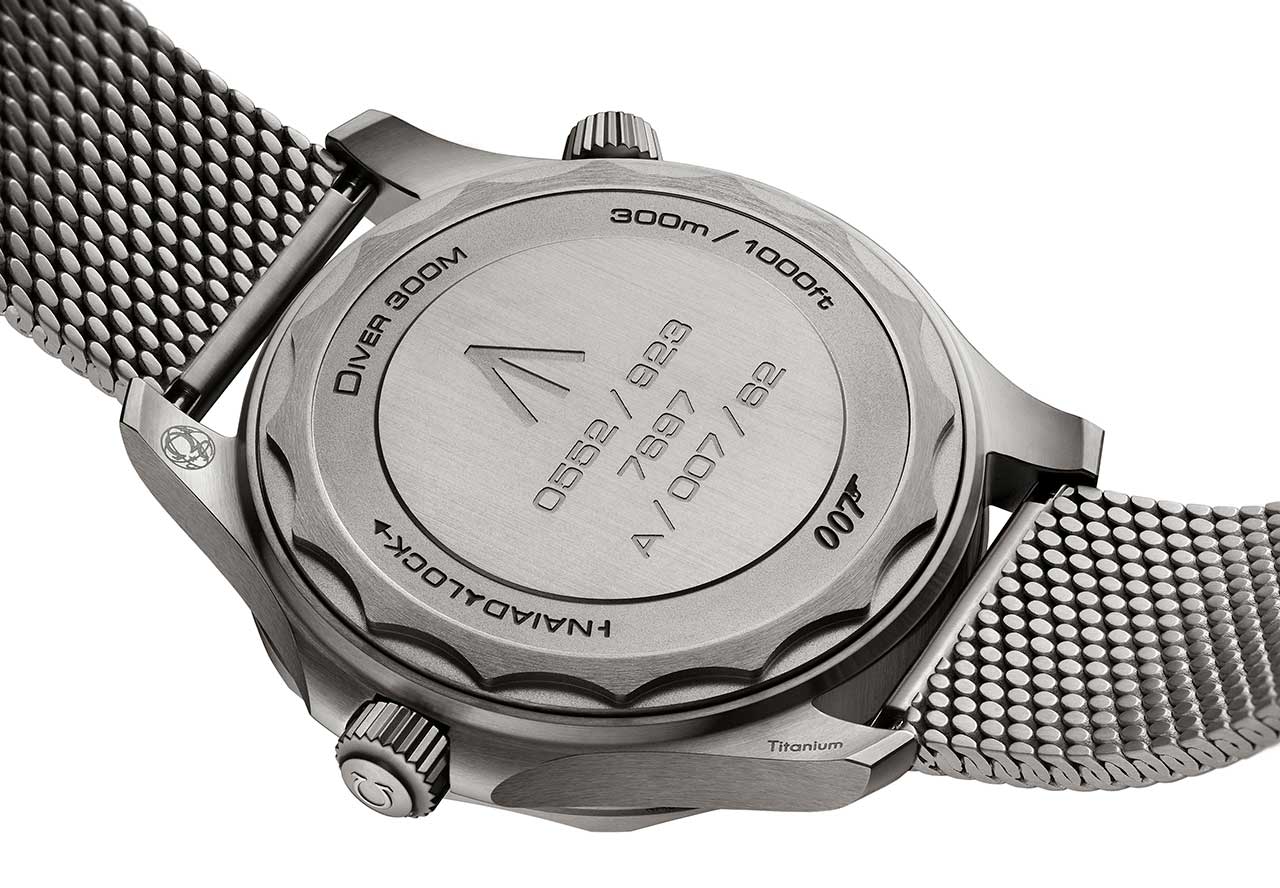 The second special Bond watch is based on the Seamaster Diver 300M, a watch which we usually associate with James Bond anyway. I know I typically refer to the first generation Seamaster to feature a wave dial as the ‘Bond Seamaster’. This new special edition does away with the wave dial that was reintroduced for the recently updated Seamaster. I like this choice. If you remember the previous Bond edition Seamaster that was also based on the Seamaster Diver 300M, it was a bit of a cluster of different elements. This version is much cleaner. In case you’re wondering about the arrow at the 6 o’clock position, this is called a Pheon mark, but most know it as a broad arrow. It denotes ownership of an item by the British Government and is quite prized to collectors of war memorabilia. The dial is made of anodised aluminium that will patinate over time, to match the ‘fauxtina’ colour of the SuperLumiNova. Oh yeah, and the bezel is aluminium as well, so expect scratches and war scars over time!