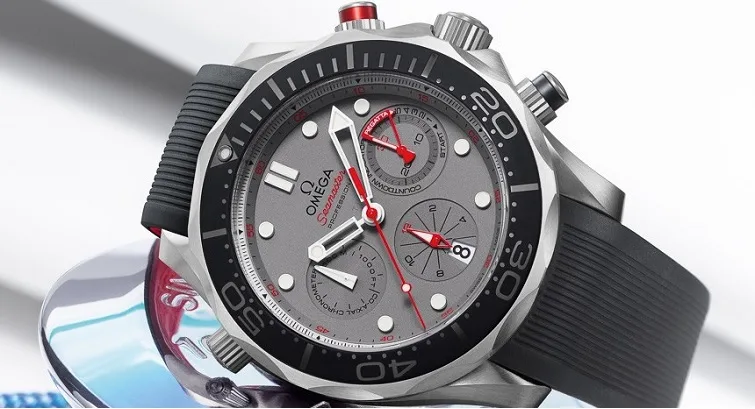 So what’s new? Nothing much except a little bit of subtle retouches. Personally, it has something to do with being more sporty and absolutely robust. The new seamaster can also be called a Regatta watch because of its 5-minute countdown timer. For the uninitiated, the 5-minute counter is the most important function of a Regatta or Yachting watch because it marks the start of the race. The 44mm case is a standard for a diver’s watch ensuring marine stability. The case brings with it all the signatures of Omega watches minus the materials used. The case is made of brushed grade 2 titanium and the bezel features ceramic inserts with numeral counters. The overall case has a matt finish which is kind of useful when you’re out there in the waters.
