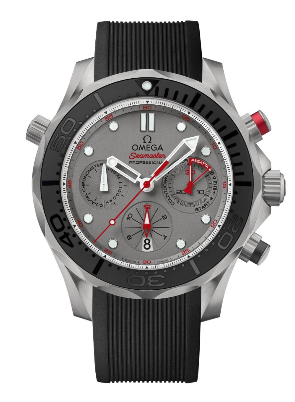 So what’s new? Nothing much except a little bit of subtle retouches. Personally, it has something to do with being more sporty and absolutely robust. The new seamaster can also be called a Regatta watch because of its 5-minute countdown timer. For the uninitiated, the 5-minute counter is the most important function of a Regatta or Yachting watch because it marks the start of the race. The 44mm case is a standard for a diver’s watch ensuring marine stability. The case brings with it all the signatures of Omega watches minus the materials used. The case is made of brushed grade 2 titanium and the bezel features ceramic inserts with numeral counters. The overall case has a matt finish which is kind of useful when you’re out there in the waters.
