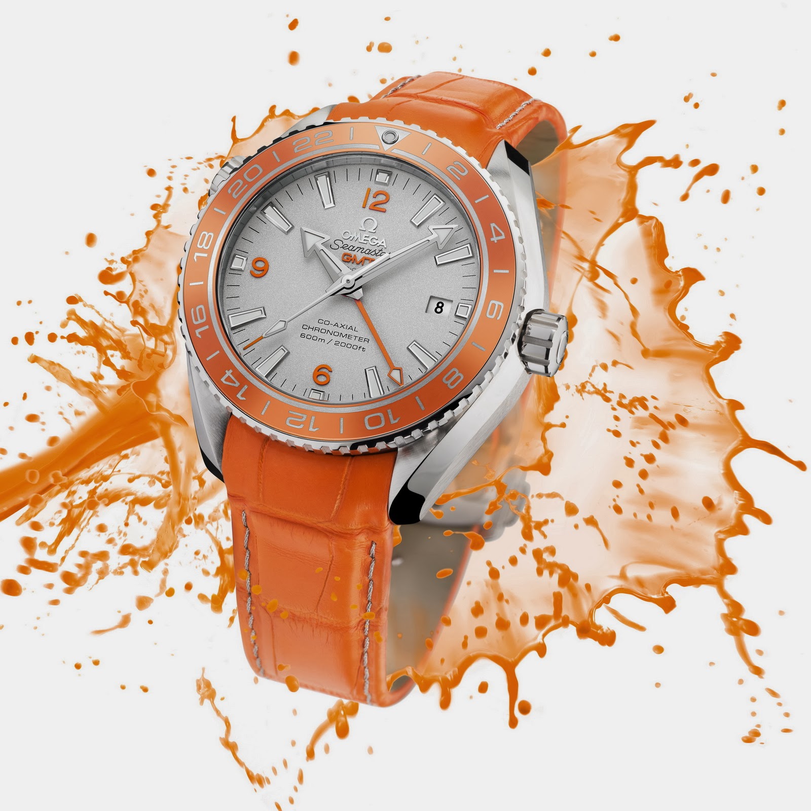 Omega announced a few days ago a world premiere with the Seamaster Planet Ocean Orange Ceramic and its new bi-directional 24-hour GMT rotating bezel whose polished ring is made from orange ceramic (patent pending). This is not the first time we see a Planet Ocean with orange colours all over, in fact I am not a huge fan of the previous models with orange, but this piece has the perfect balance of orange colour. You are maybe asking yourself “What is so special with a ceramic bezel in orange?” Due the complex process to get ceramic in colour this is a big thing in the world of watches. Omega has showed the way before: first dive watch (Marine 1932), first watch on the moon (1969), first co-axial escapement (1999), first Liquidmetal (2009), and first orange ceramic (2014).