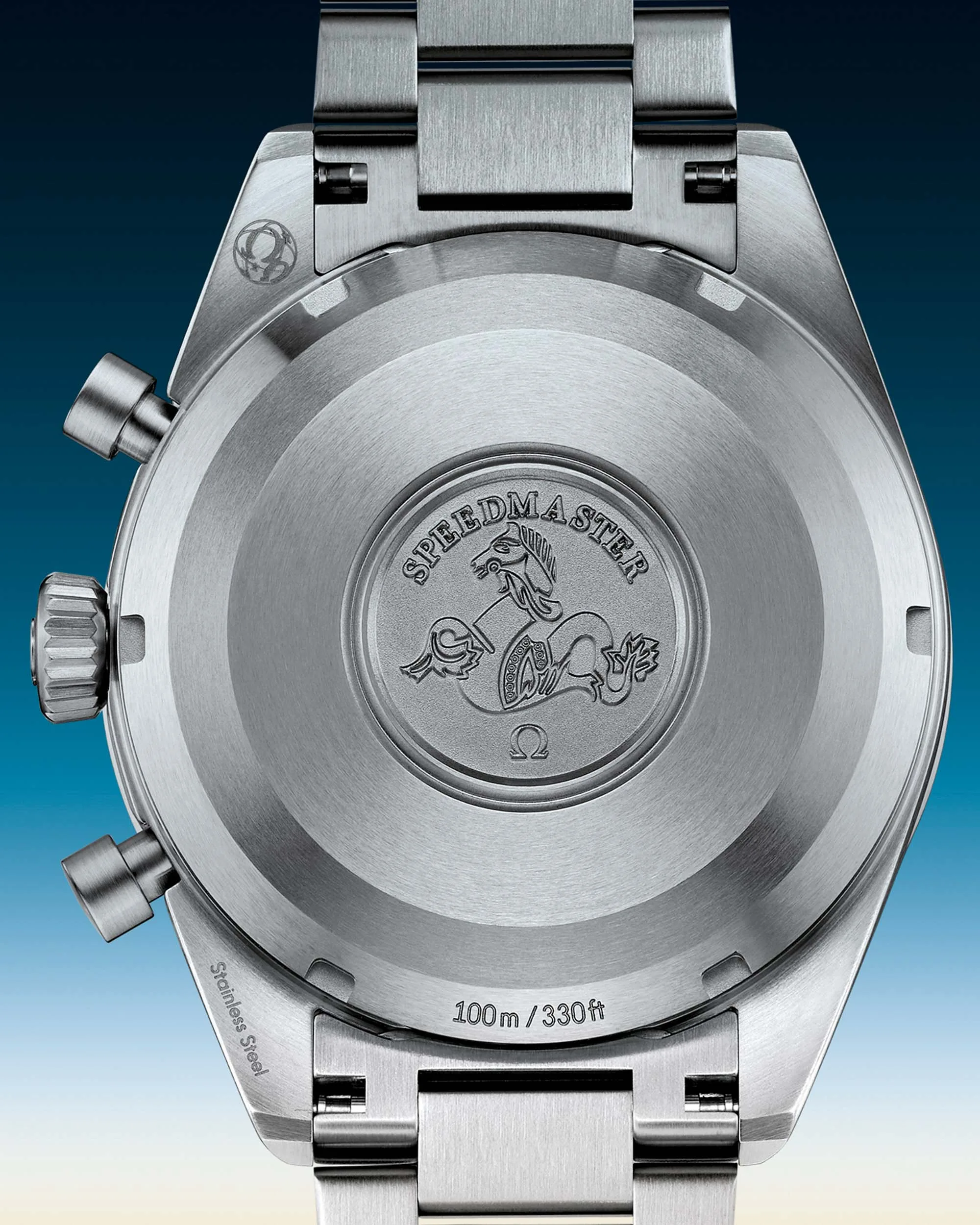 Omega’s Speedmaster Pilot features a stainless steel case measuring precisely 40.85mm x 14.7mm with 100m of water resistance, presumably, so you’re covered if you have to ditch into the sea or a very large swimming pool.