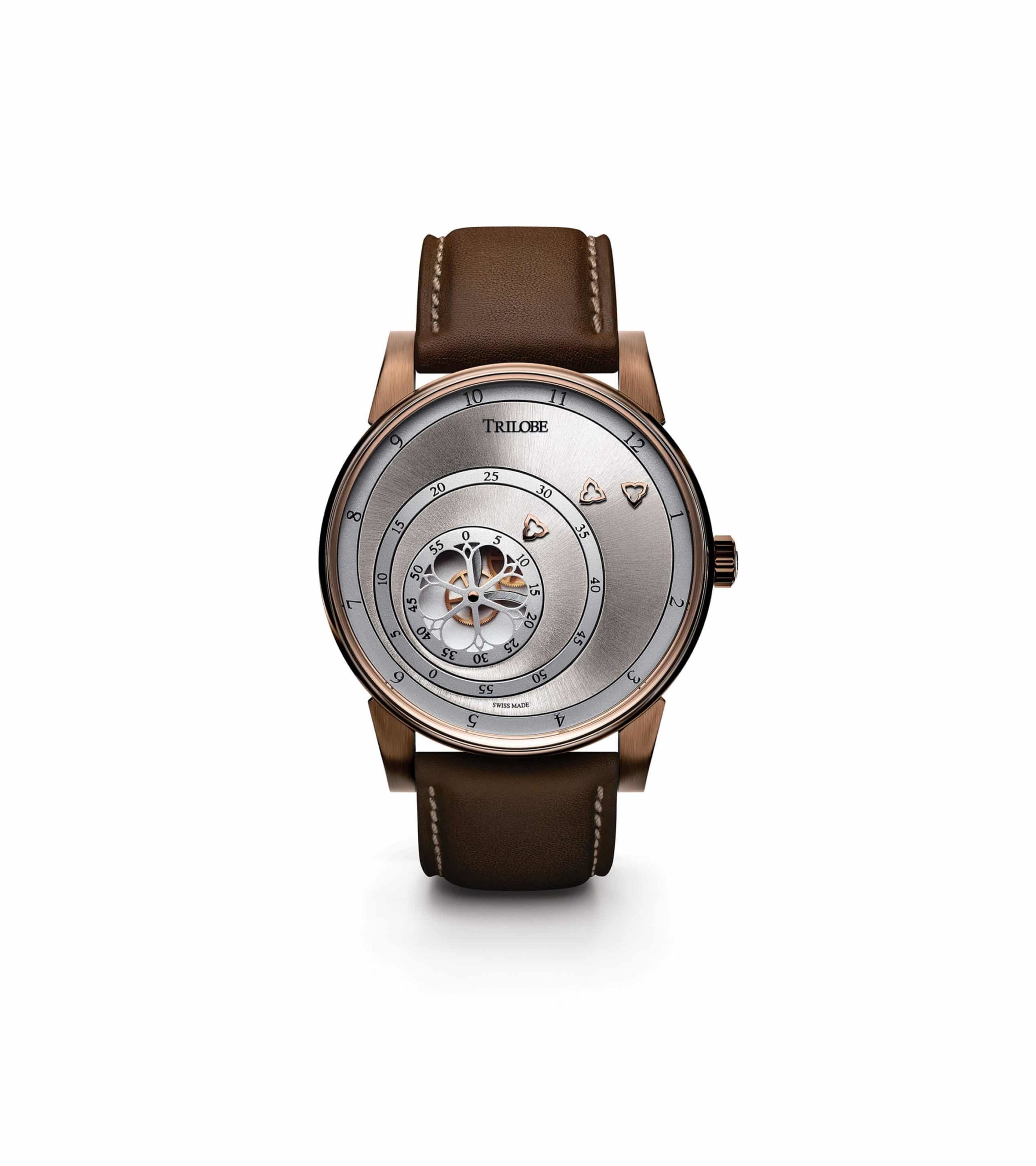 To get the entire dial moving, Trilobe consulted with Jean-François Mojon, the head of Chronode SA, which shares a financial partner with Swiss brand Cyrus, which launched their Klepcys vertical tourbillon watch this year to the approval of nearly everyone. The movement is based on an ETA 2892 which has been heavily modified by means of something called an ‘X-Centric Module’, which we can assume is the gizmo that turns the dial. There’s a 42-hour power reserve and a 4Hz beat rate from this reliable movement.