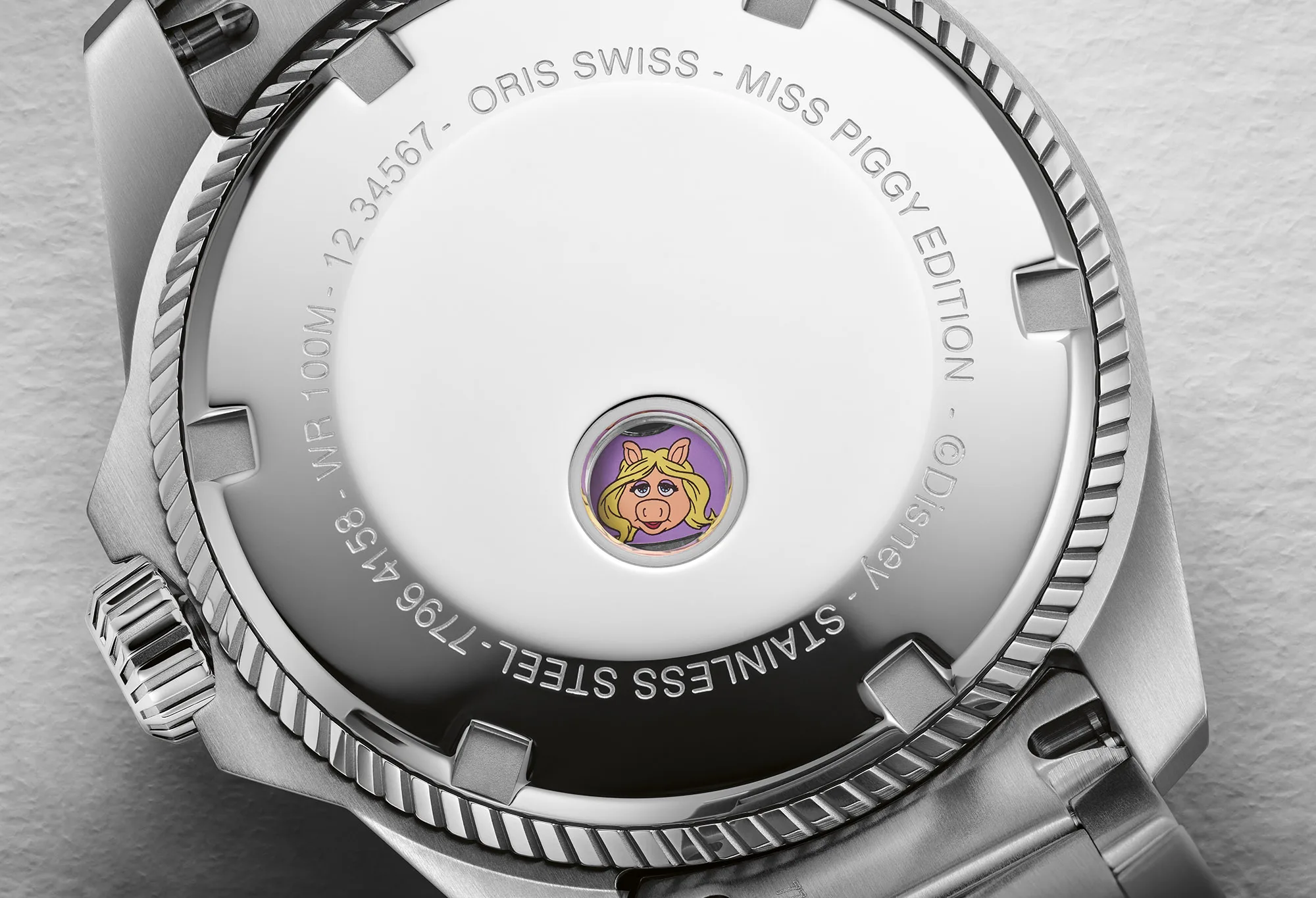 Powering the ProPilot X Miss Piggy Edition is the Oris Calibre 400. A unique feature of this watch is the caseback, which boasts a small mineral glass aperture displaying a miniature image of Miss Piggy framed within the rotor.