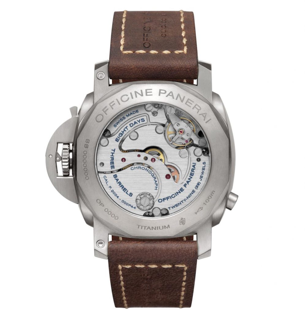 The Calibre P.2004 powering the PAM 737 is also in-house and hand-wound with that staggering 8 days of power reserve. The movement that is also visible in the caseback is finished in the brand’s unique industrial style. We can even see the column wheel mechanism that is perfectly visible in the back. The movement also sports a zero-reset system for easy and precise setting of the time. Moreover, it wears on the same dark brown strap stamped with Panerai logo.