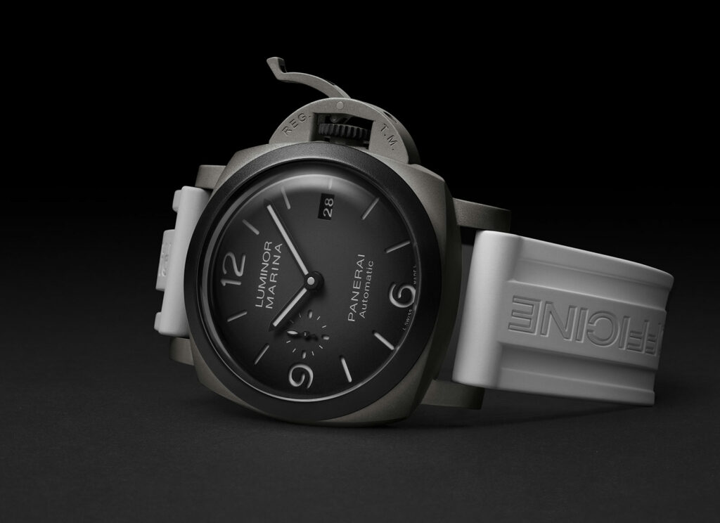 This watch is limited in production to just 70 examples that can only be bought from Panerai boutiques for $18,900. Happily, it does come with a couple of straps, either a white rubber piece or a black textile strap made almost entirely from recycled plastic, isn’t that nice?