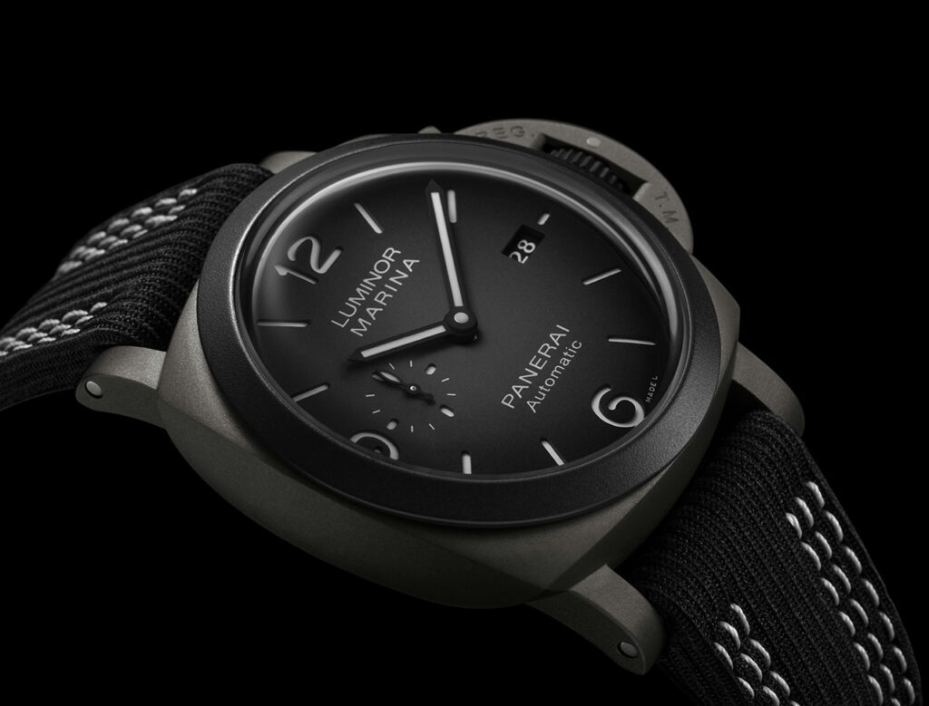 This latest model comes from Panerai’s Luminor line, which takes its name from the luminous paint. The watch is 44mm in diameter and 16.2mm thick but will be very lightweight thanks to the case which is made from titanium. This is no ordinary carved-out block of titanium, though, it’s been made using a technique called Direct Metal Laser Sintering (DMLS). A very high power laser blasts a specific shape into a container filled with an extremely fine titanium powder. When the laser has finished, the container lowers slightly, and an arm smoothes over the powder so the laser can blast the next layer. The sintering machine continues this until it creates the finished product, think of it as a different form of 3D printing (which is essentially what it is). Each layer is 0.03mm thick, meaning the process takes a long time and is very expensive to do.