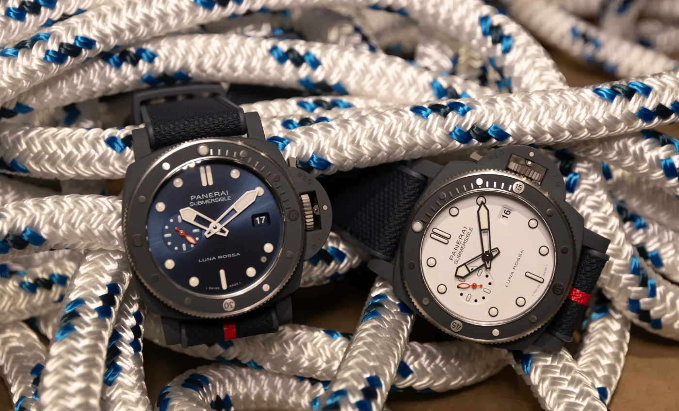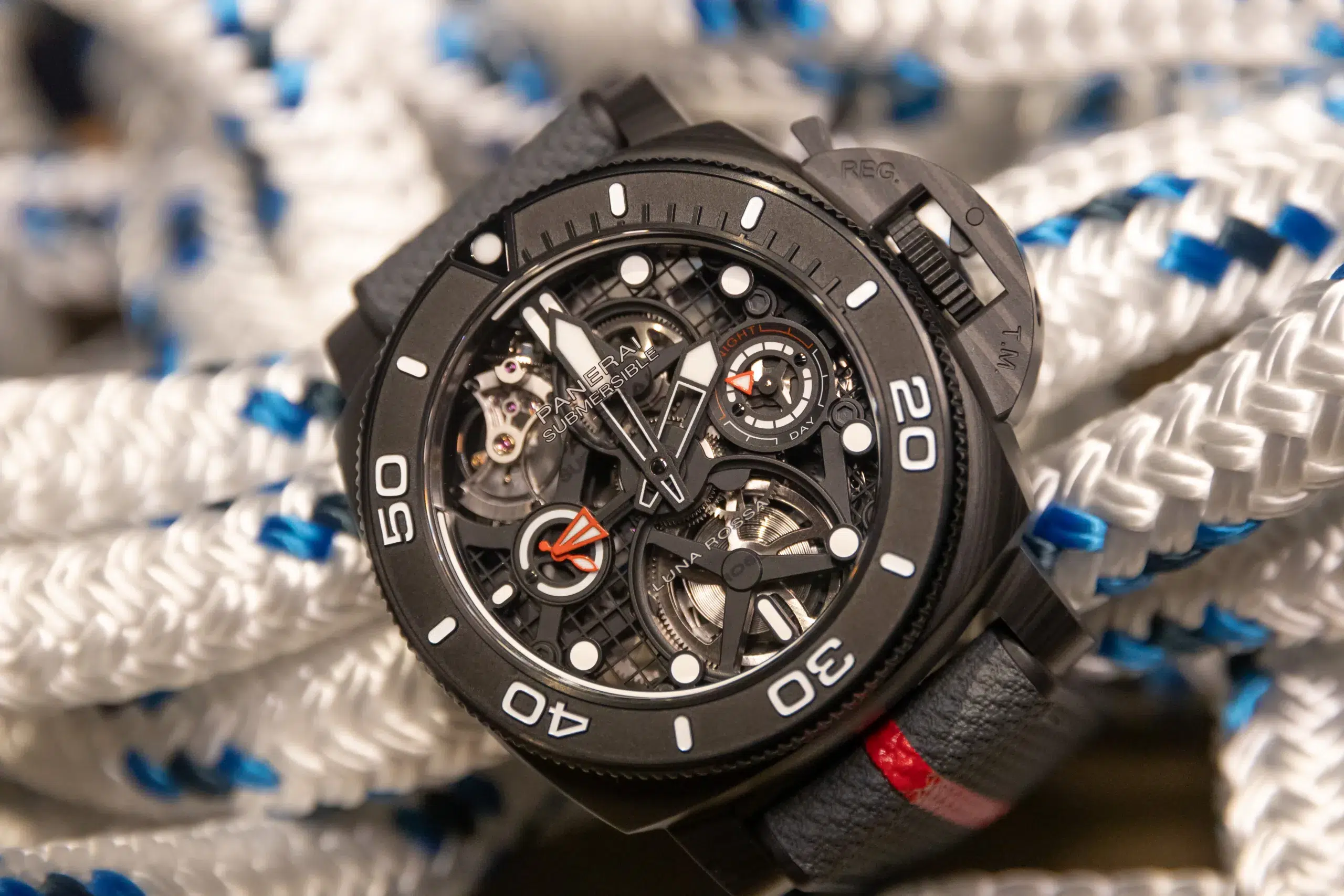 For the regatta regular with a penchant for high-performance, Panerai offers the Submersible Tourbillon GMT Luna Rossa Experience Edition. Limited to just 20 pieces, this watch boasts a sleek 45mm Carbotech carbon fiber case, a nod to the Luna Rossa Prada Pirelli team’s boat.