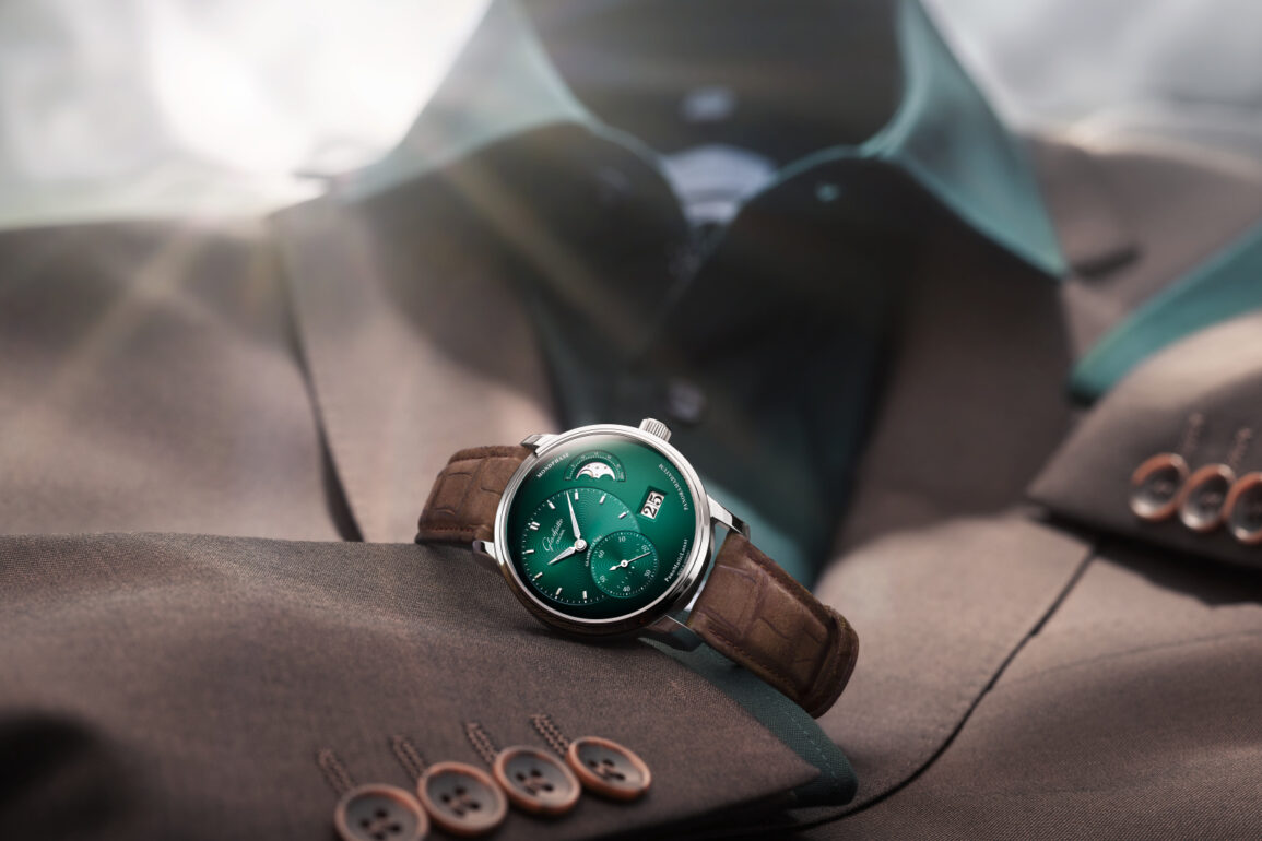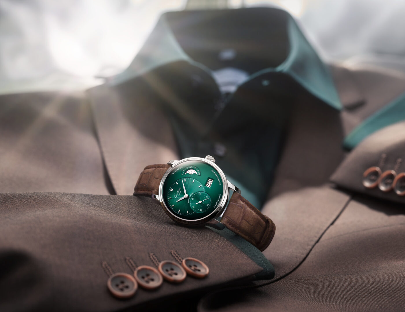 PanoMaticLunar is the most popular model from the Pano line, if not the most popular model overall from Glashütte Original. The dial configuration follows the golden ratio, where the hour, minute and small second register are presented on the left side of the dial, while the Panorama Date and moon phase display are arranged on the right side. The intricately detailed and meticulously finished dials are made by genuine artisans in up to 40 steps. Intense blue, cold silver, fir green, and ominous black are just the right colors that can emerge from the technique. PanoMaticLunar is available in stainless steel or red gold.