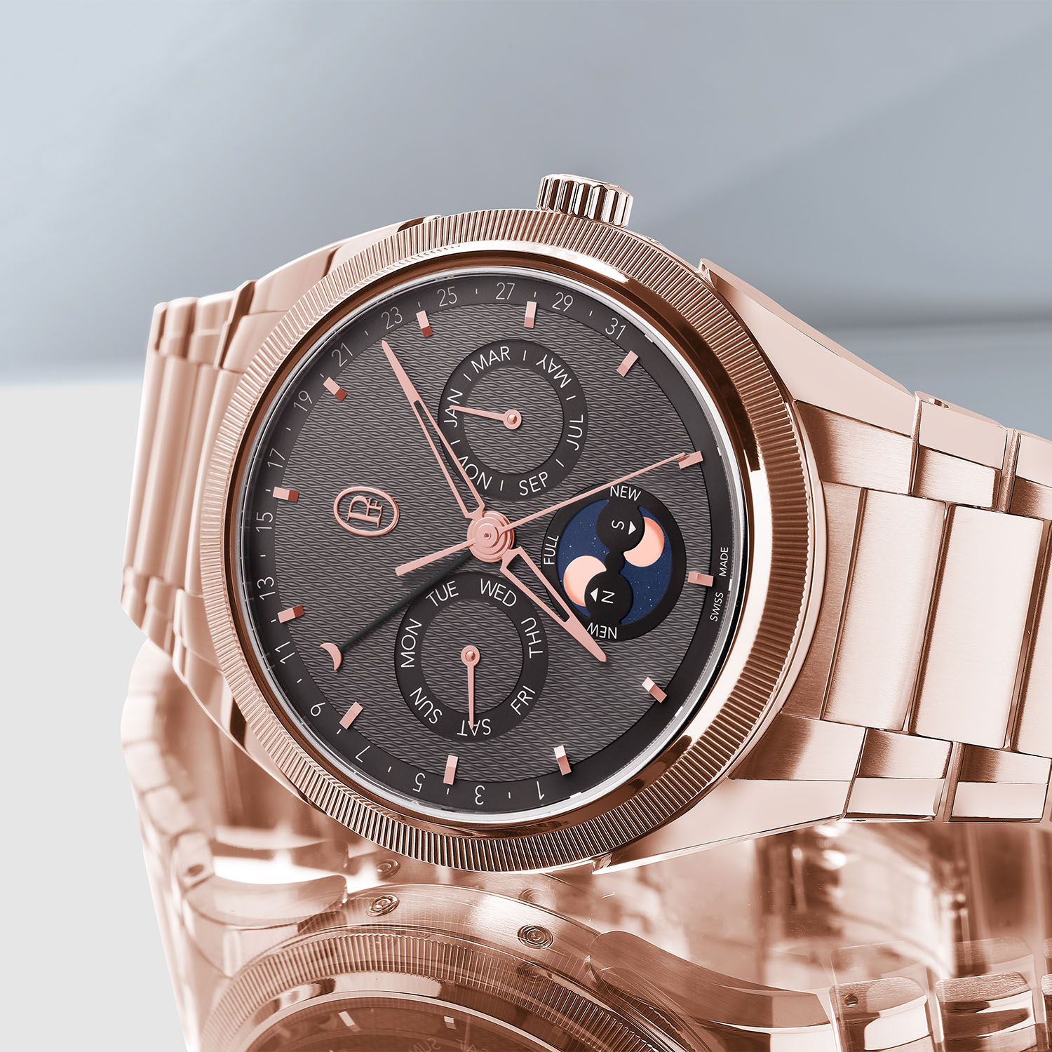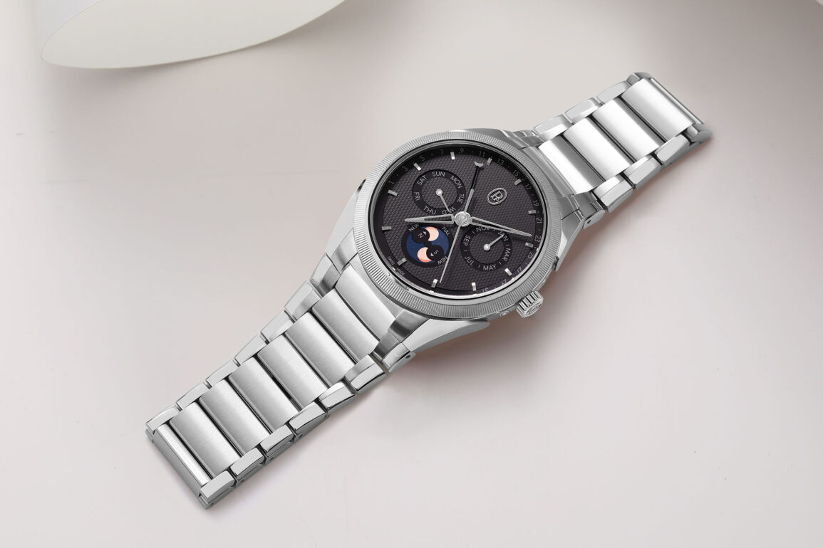 There’s something to be said about a sportier watch with a calendar function instead of a chronograph. It adds an edge of sophistication while still retaining the sporting credentials (although exactly how many credentials these watches have remains to be seen). This watch features a day, date, month and moonphase indicator, and the annual calendar system within it will adjust for the ends of every month, excluding February.
