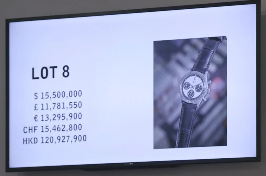 After months of hype, dozens of articles and videos, and Aurel Bacs touting the importance of the watch, all eyes were watching Phillips on Thursday evening. Bacs opened the watch with an absentee bid of $1,000,000 before a yell of $10,000,000 came from across the room via a telephone bid. After a tense yet humorous back and forth between Bacs and the telephone bidders, the hammer fell on Lot 8 for $15,500,000 (or $17,752,500 including buyer’s premium). In the space of a few minutes, this stainless steel chronograph had become the most expensive wristwatch ever sold at auction, beating Bacs’ sale of the Rolex Ref. 6062 Bao Dai from earlier this year.
