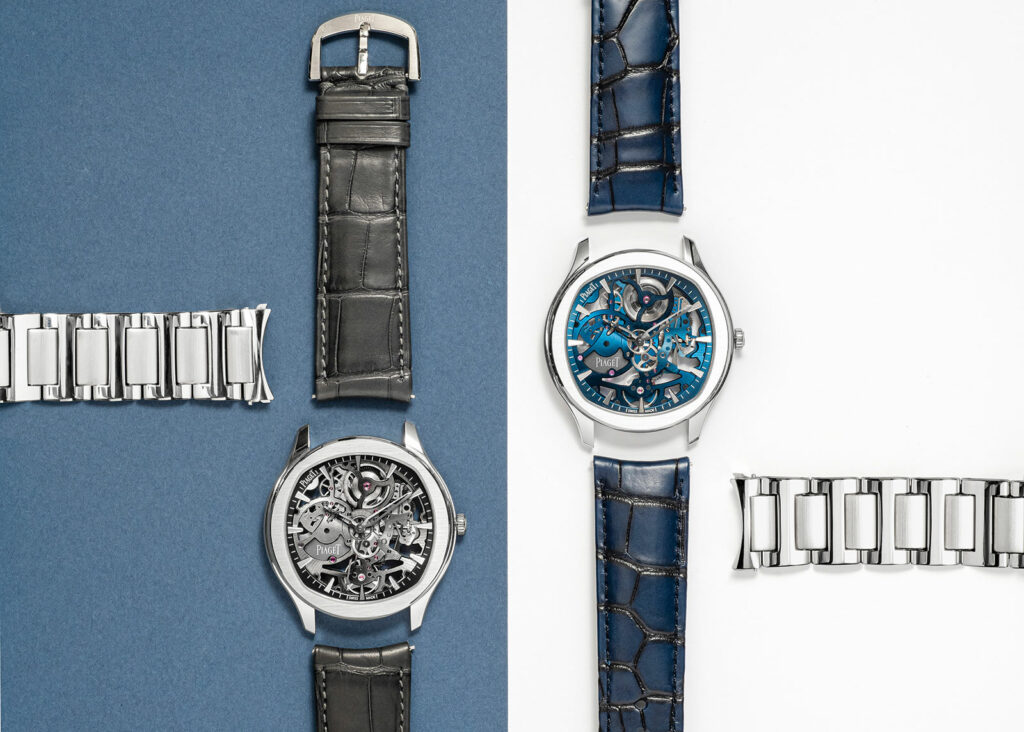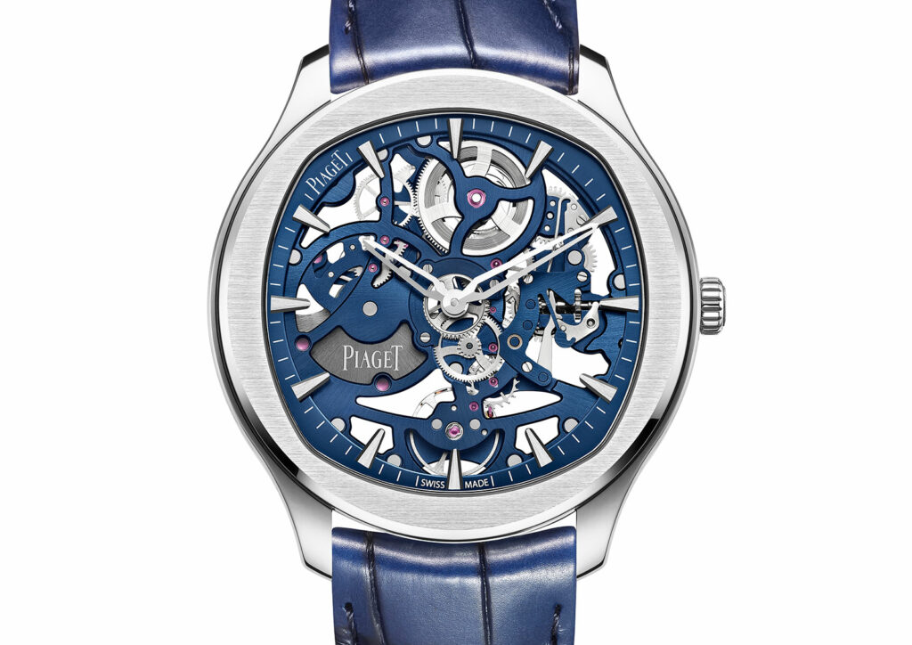 As the name says, the new watch comes with a skeleton dial, meaning the entirety of the movement is on display here. Piaget goes down the same route as Zenith did with its skeletonised Defy watches by offering a splash of colour on the bridges of the movement, so you can still have a blue theme if you want.
