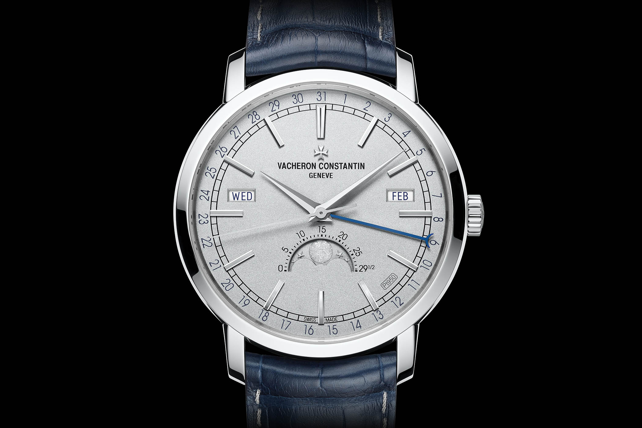 Speaking of vintage inspiration, VC has brought back a specific calendar from the 1940s and 1950s which is the Complete/Triple calendar. This complication is usually defined as having three indications of a full date: day of the week, date of the month and month. As seen in the Historiques Triple Calendar 1942 & 1948, a Complete/Triple calendar relies on a date (on the edge of the dial) indicated by a central hand while the day and month (in windows) are indicated on the upper dial which is crafted from a single plate of platinum. It has a beautiful sand-blasted finish that results to a matte look that also gets a metallic hue when lighted. Also seen on the dial is the subtle “Pt950” inscription between 4 and 5.