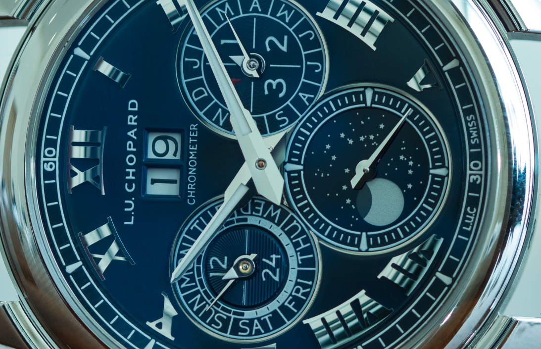 The heart of the new Lunar One is, of course, an in-house Calibre 96.13-L, an L.U.C. crown jewel operating at 28,800 vph and cranking a pretty lengthy power reserve of 65 hours. This is arguably touted as an accomplishment in a stable of pretty interesting calibers at both ends of the complication spectrum. This movement is requiring adjustments once every 122 years, that is certainly the job of your descendants. One of the special signature features of this movement is its astronomical moon phase complication orbiting the sub-dial at 6. The nighttime sky presentation is fascinatingly in realtime, this is indeed a lovely astronomical positioning that is somehow akin to the latest GPS devices, fooled me.