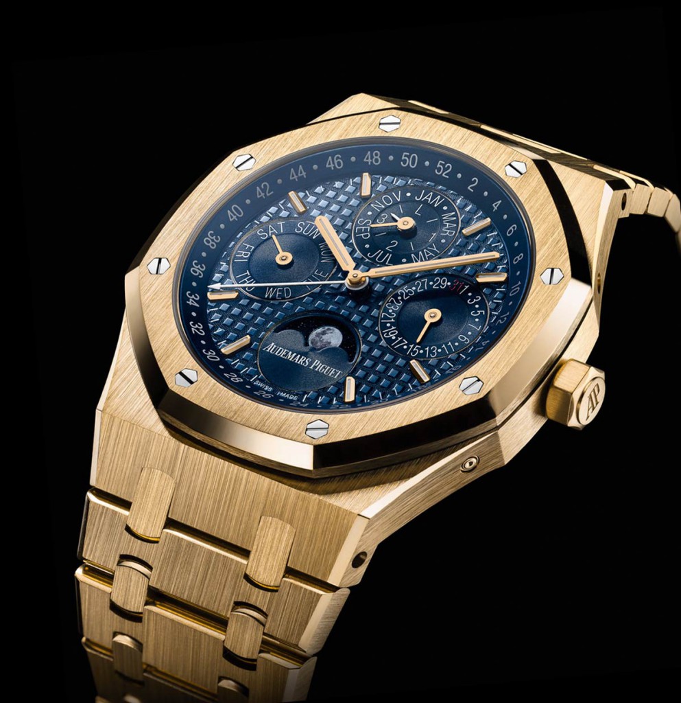 The blue dial is the perfect background for yellow gold in my humble opinion of course. If a silver dial is used it kind of brings dull contrast since we are supposed to see yellow gold and do away with lighter colors. However, if blue is used against yellow gold, it simply invites more focus on the dial which is what we want. The complications are also done nicely and harmoniously to say the least. The perpetual calendar indications include the day, month, leap year, date, astronomical moon and the week indication at the outer chapter ring. The applied hour markers with luminescent accents simply create perfect contrasts against the hue of the blue dial while the classic Royal Oak hands bring in more traditional touches to the timepiece.