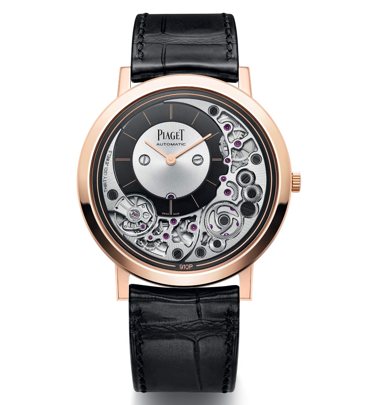 Unfortunately, records are made to be broken and soon both of these watches were beaten, albeit by a slim margin. Jaeger-LeCoultre’s Master Ultra-Thin Squelette beat the 900P by just 0.5mm and Bulgari’s Octo Finissimo Automatic beat the self-winding Altiplano by 0.10mm. Yet Piaget continued to develop ways to skim every possible macro-meter from their movements, and with the recently announced Altiplano Ultimate 910P have reclaimed one of their records. At a dizzingly thin height of only 4.3mm, the Ultimate 910P is the thinnest self-winding watch in the world, beating the nearest watch by a staggering 0.85mm (Okay, in the world of ultra-thin watches, 0.85mm is staggering).