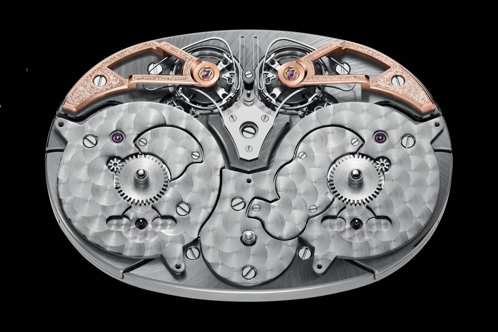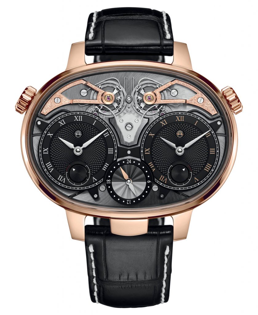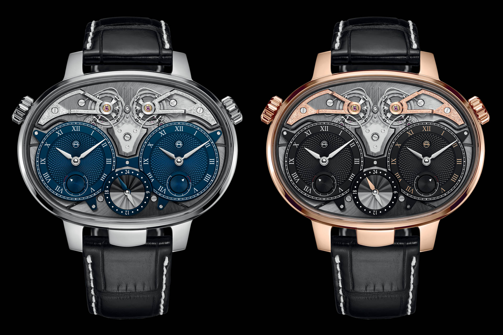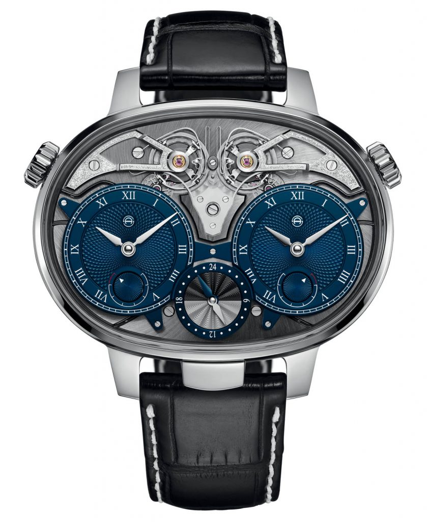 Their latest timepiece is a horological work of art and is as impressive in design as it is in architecture and mechanical prowess. The Dual-Time Resonance Masterpiece 1 is powered by a combination of two independent movements allowing it to display two different time zones. The term Resonance refers to the highly technical watchmaking skill of combining two movements to allow the natural frequency of each of the two movements to be in complete harmony. This is similar to F.P. Journe’s own Resonance that features twin dials driven by the two resonating gear trains.